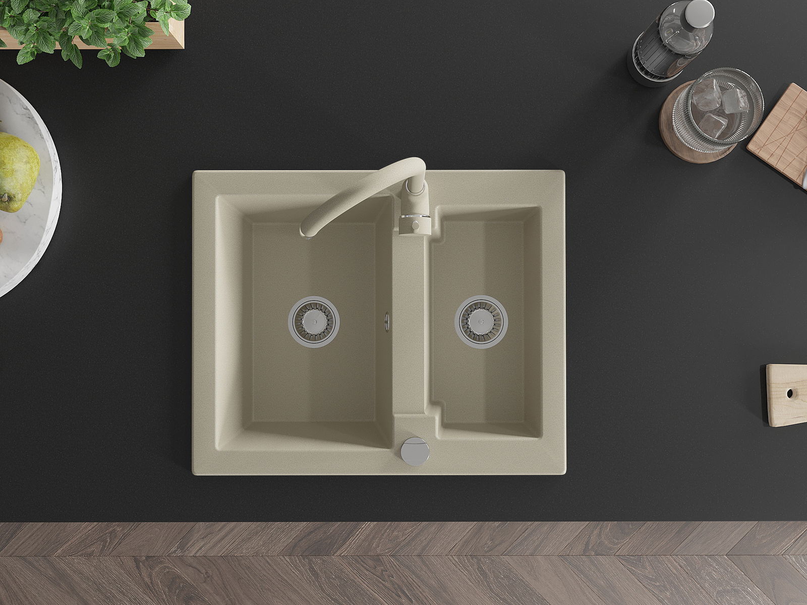 Mexen Carlos νεροχύτης γρανίτη 1,5-θαλάμων με μπαταρία κουζίνας Telma, μπεζ