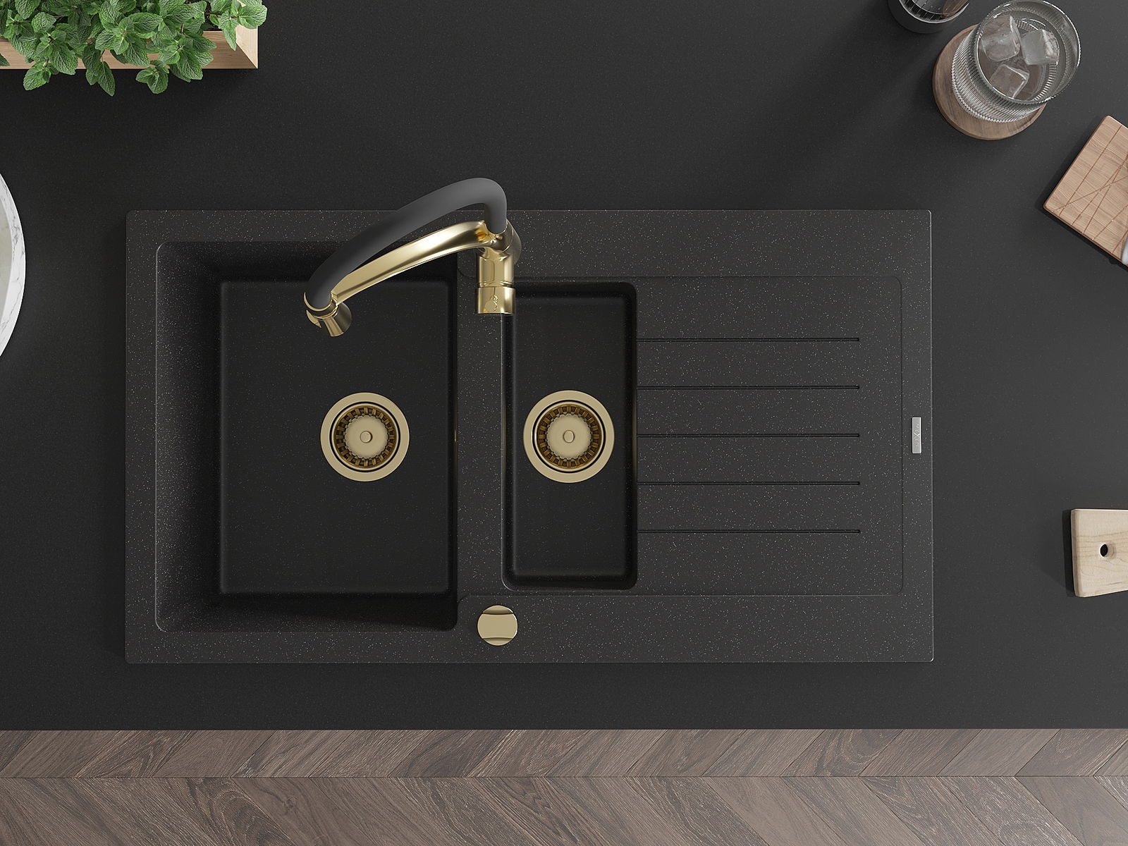 Mexen Matias νεροχύτης γρανίτης 1,5 θαλάμες με στεγνωτήριο και μπαταρία