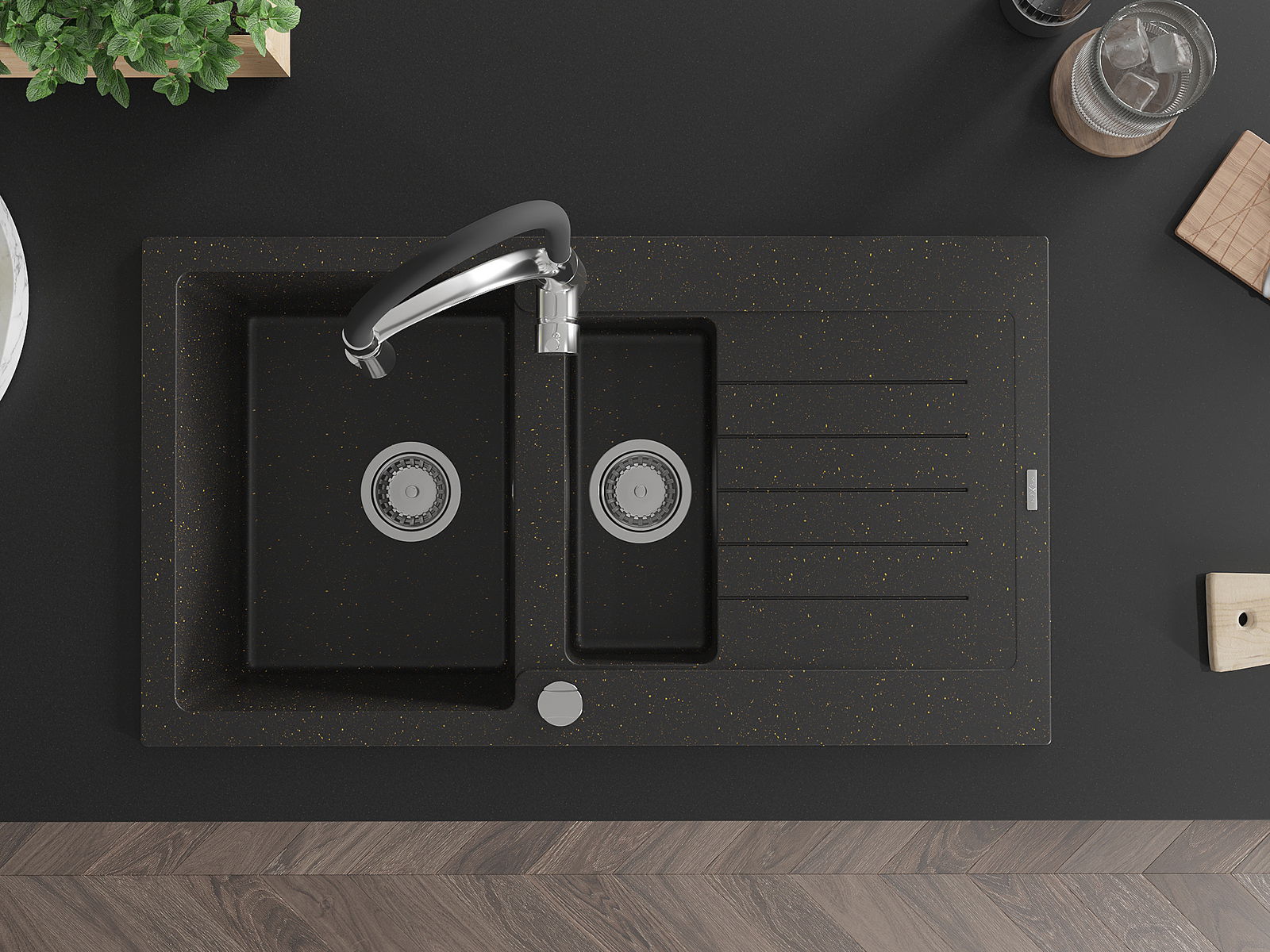 Mexen Matias νεροχύτης γρανίτης 1,5 θαλάμου με αποστράγγιση και μπαταρία