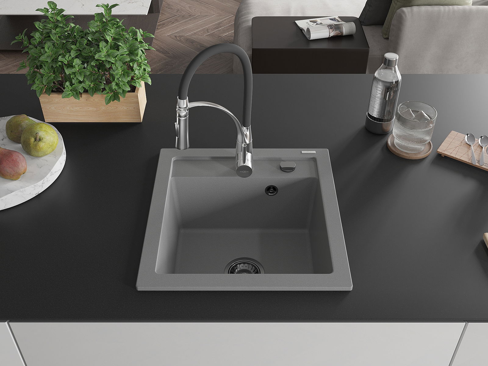Mexen Vito νεροχύτης γρανίτης 1-διαμερισμάτων με μπαταρία κουζίνας Aster,