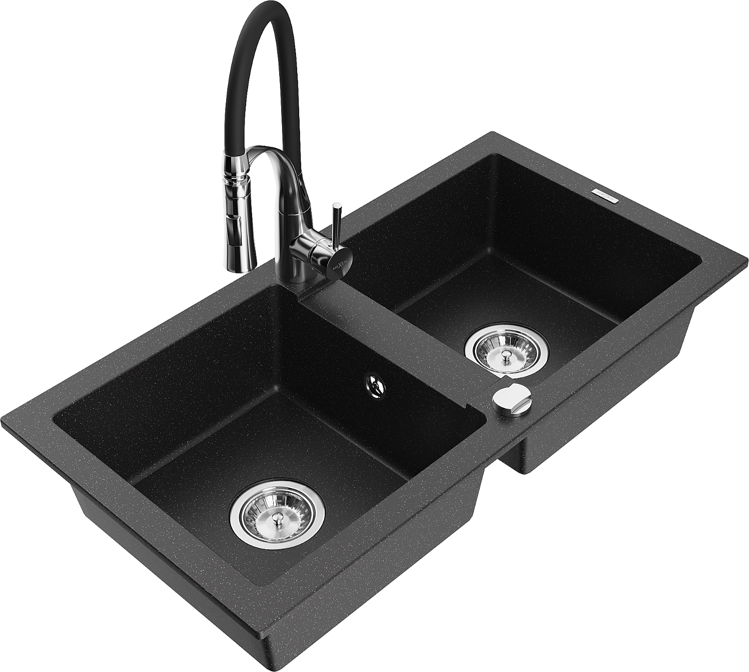 Mexen Mario νεροχύτης γρανίτη 2-θαλάμων με μπαταρία κουζίνας Aster,