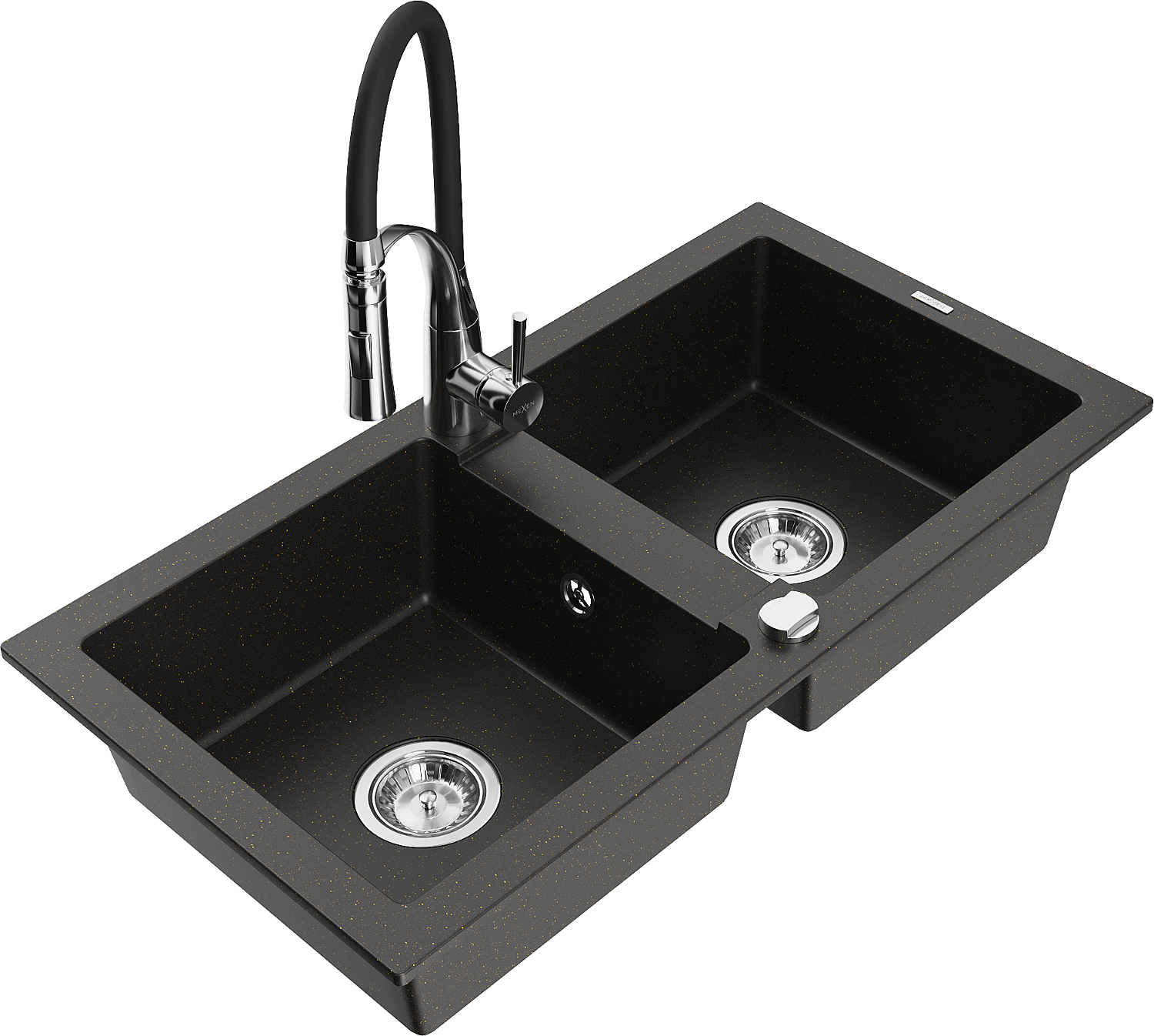 Mexen Mario νεροχύτης γρανίτης διπλής γούρνας με μπαταρία κουζίνας Aster,