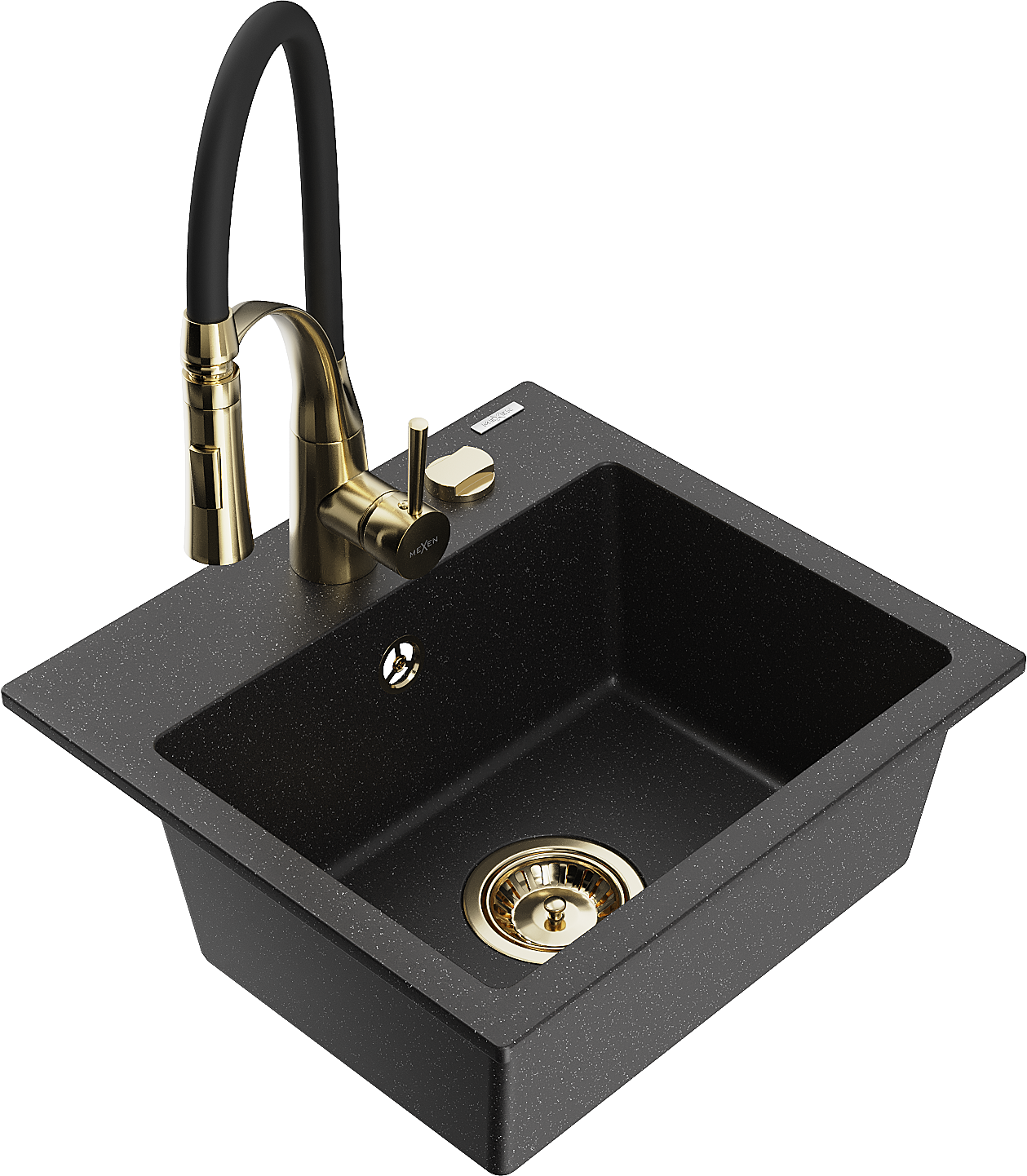 Mexen Milo Νεροχύτης γρανίτη 1-θέσεων με μπαταρία κουζίνας Aster, μαύρο/ασημί