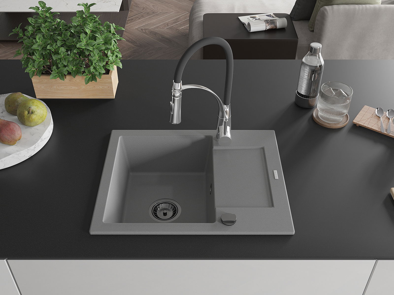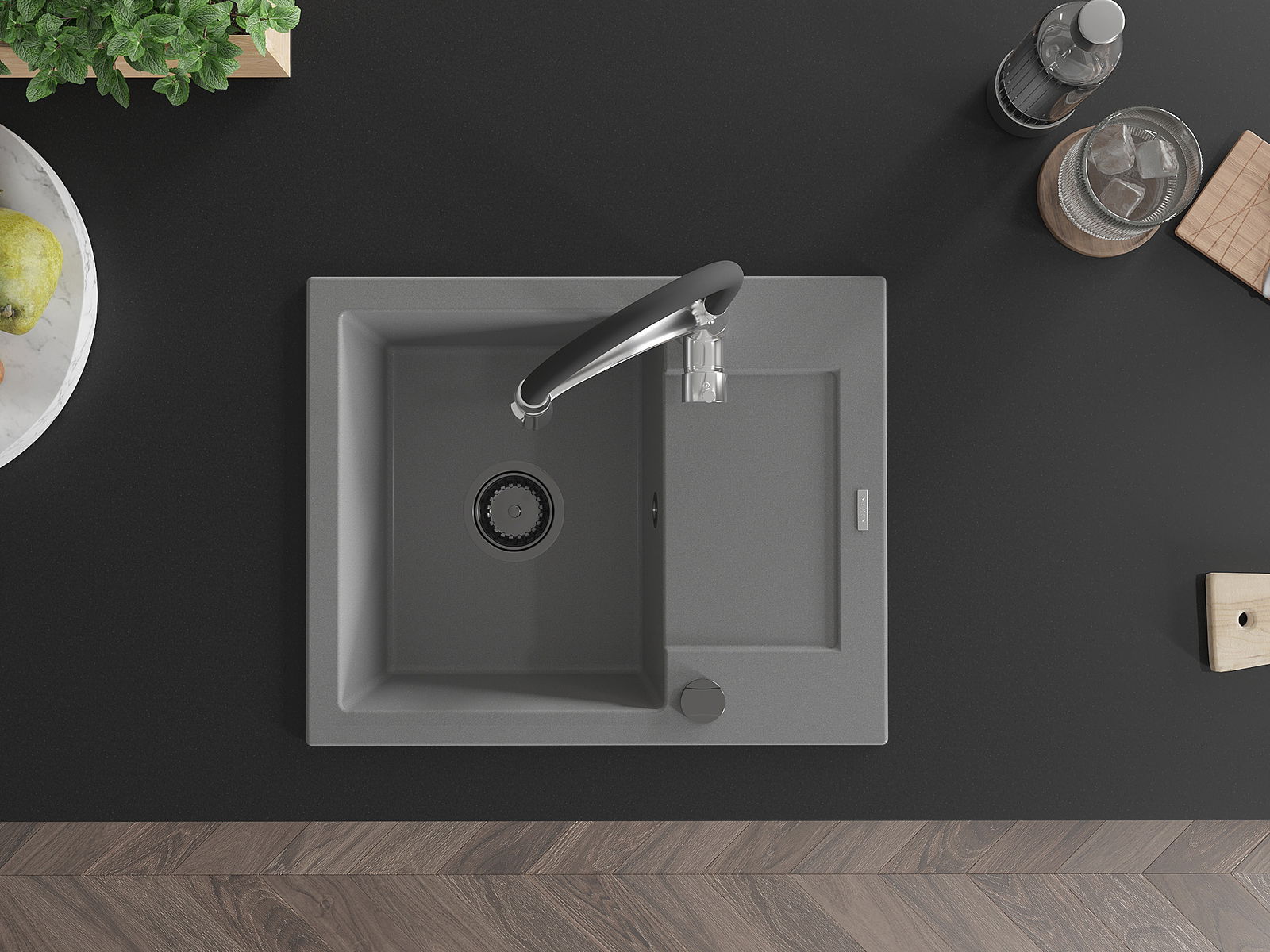 Ο νεροχύτης κατασκευάστηκε από υψηλής ποιότητας γρανίτη. Αποτελεί μια κομψή, και κυρίως πρακτική προσθήκη για κάθε κουζίνα, ανεξάρτητα από το στυλ της. Η υψηλή ποιότητα και η αντοχή του γρανίτη εξασφαλίζουν πολυετή χρήση.
