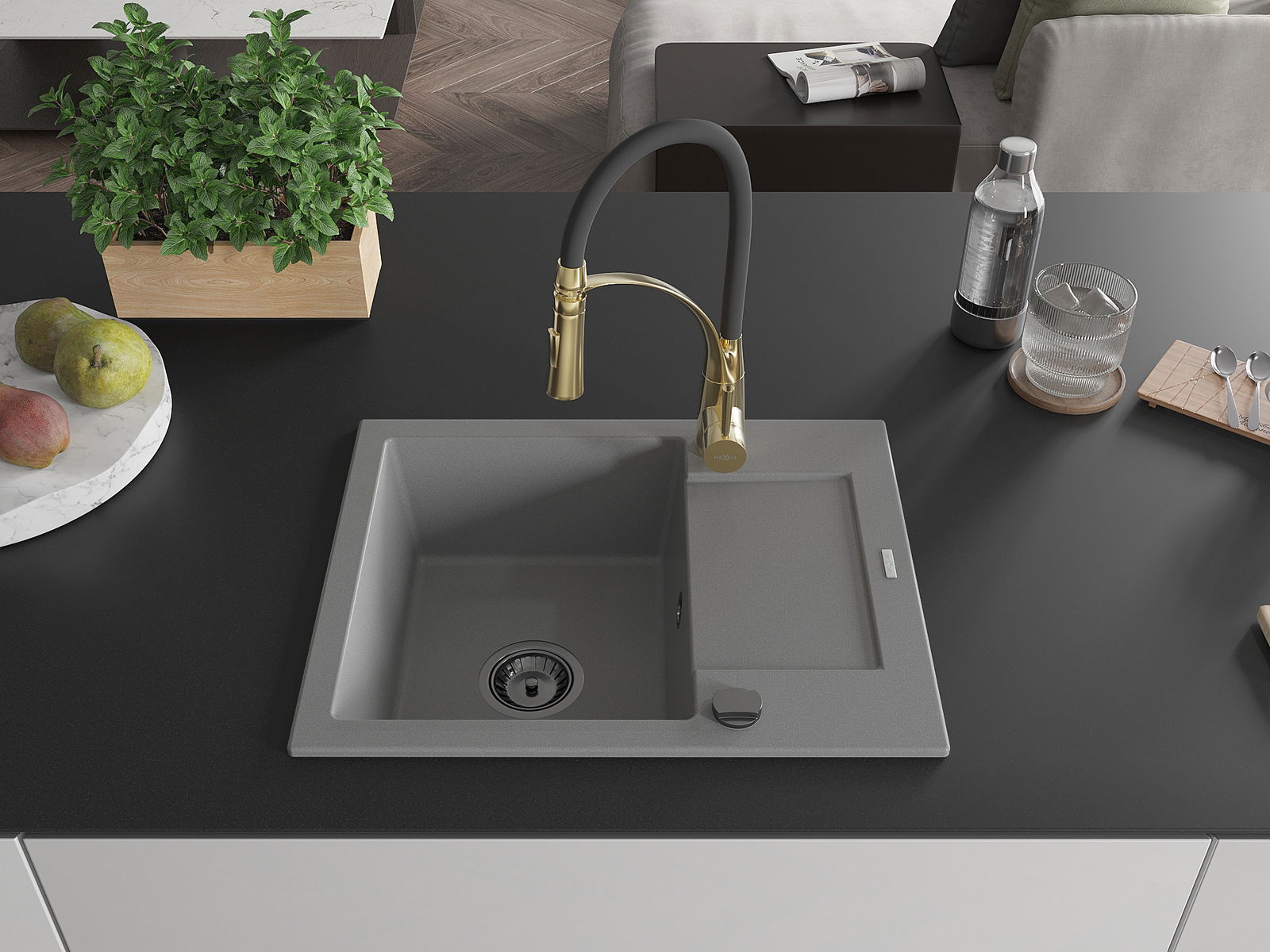 Mexen Enzo νεροχύτης γρανίτης μονής λεκάνης με αποστράγγιση και μπαταρία
