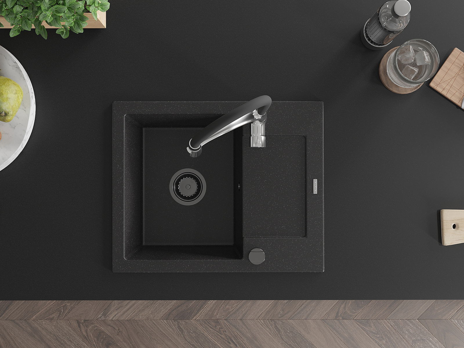 Mexen Enzo νεροχύτης γρανίτης 1 θάλαμος με στραγγιστήρι και μπαταρία