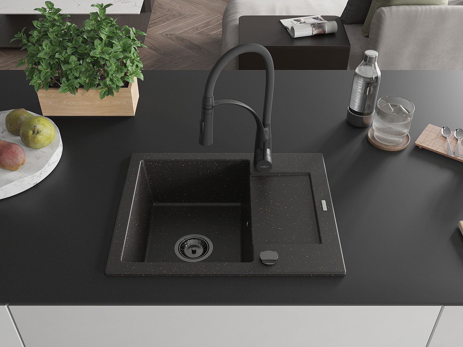 Mexen Enzo νεροχύτης γρανίτης 1-χώρο με αποστράγγιση και μπαταρία κουζίνας