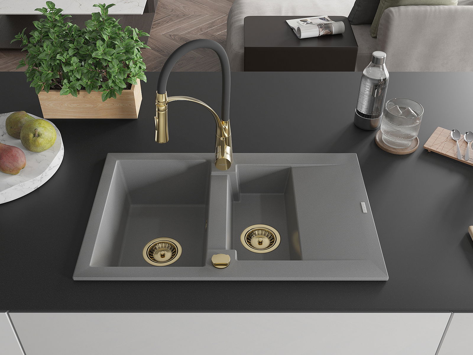 Mexen Gaspar νεροχύτης γρανίτης 1,5-θαλάμου με στραγγιστήρι και μπαταρία