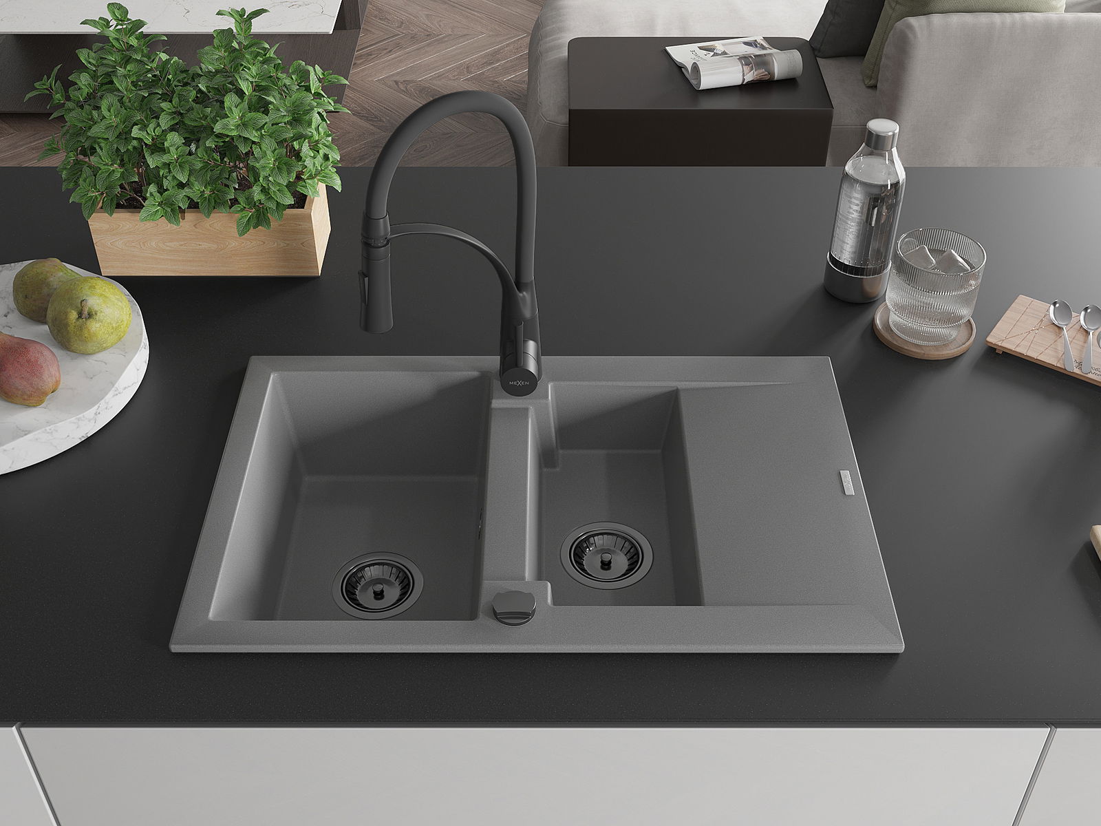 Mexen Gaspar Νεροχύτης γρανίτης 1,5 θάλαμοι με επίπεδο και μπαταρία κουζίνας