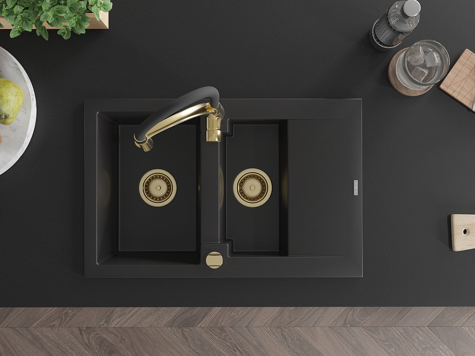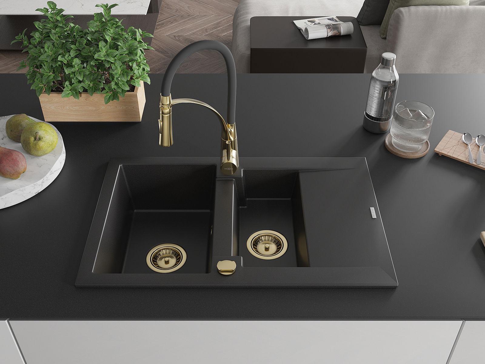 Mexen Gaspar νεροχύτης γρανίτης 1,5-θαλάμων με στραγγιστήρα και μπαταρία