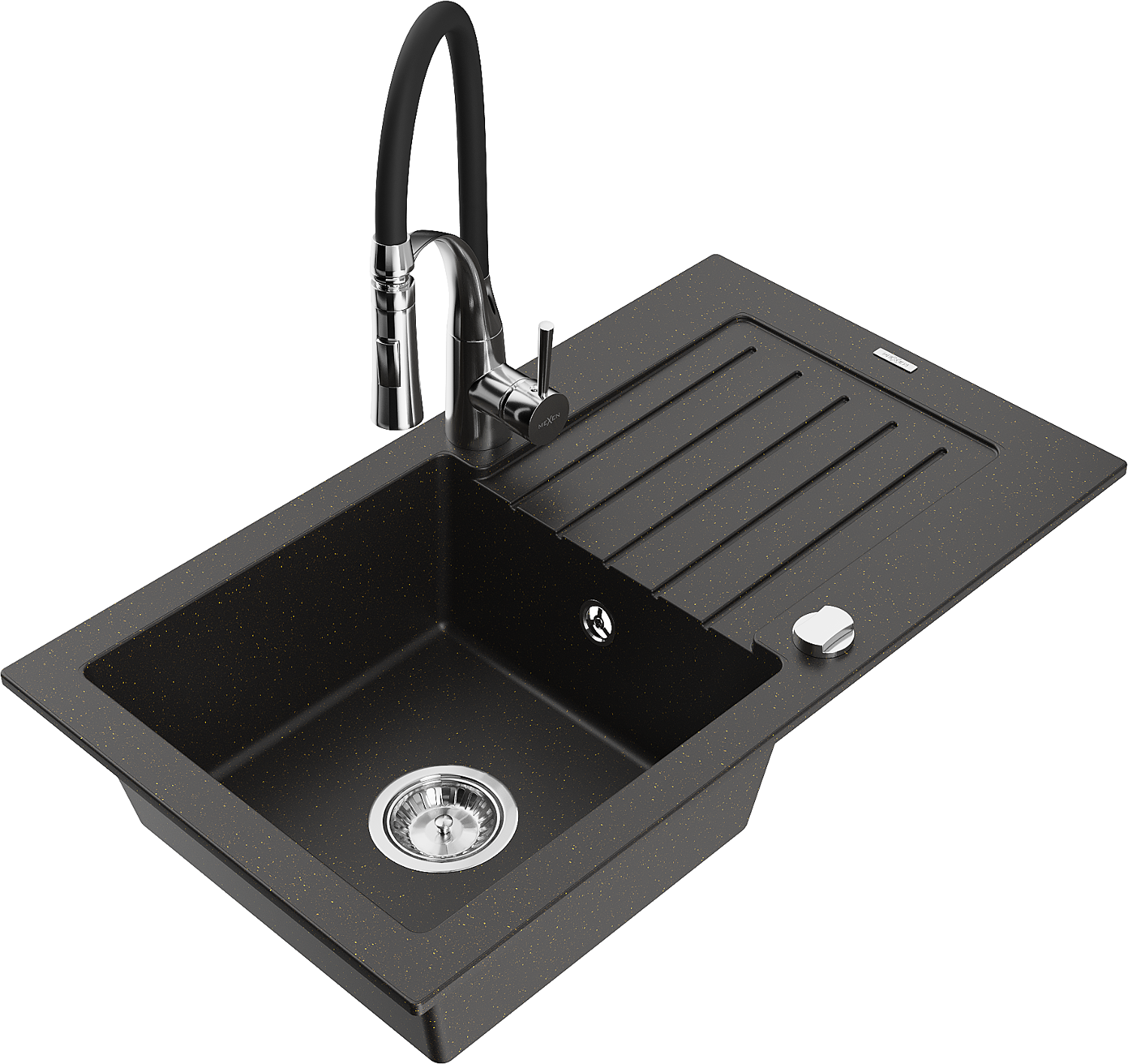 Mexen Pablo νεροχύτης γρανίτης 1-αιθουσών με αποστράγγιση και μπαταρία