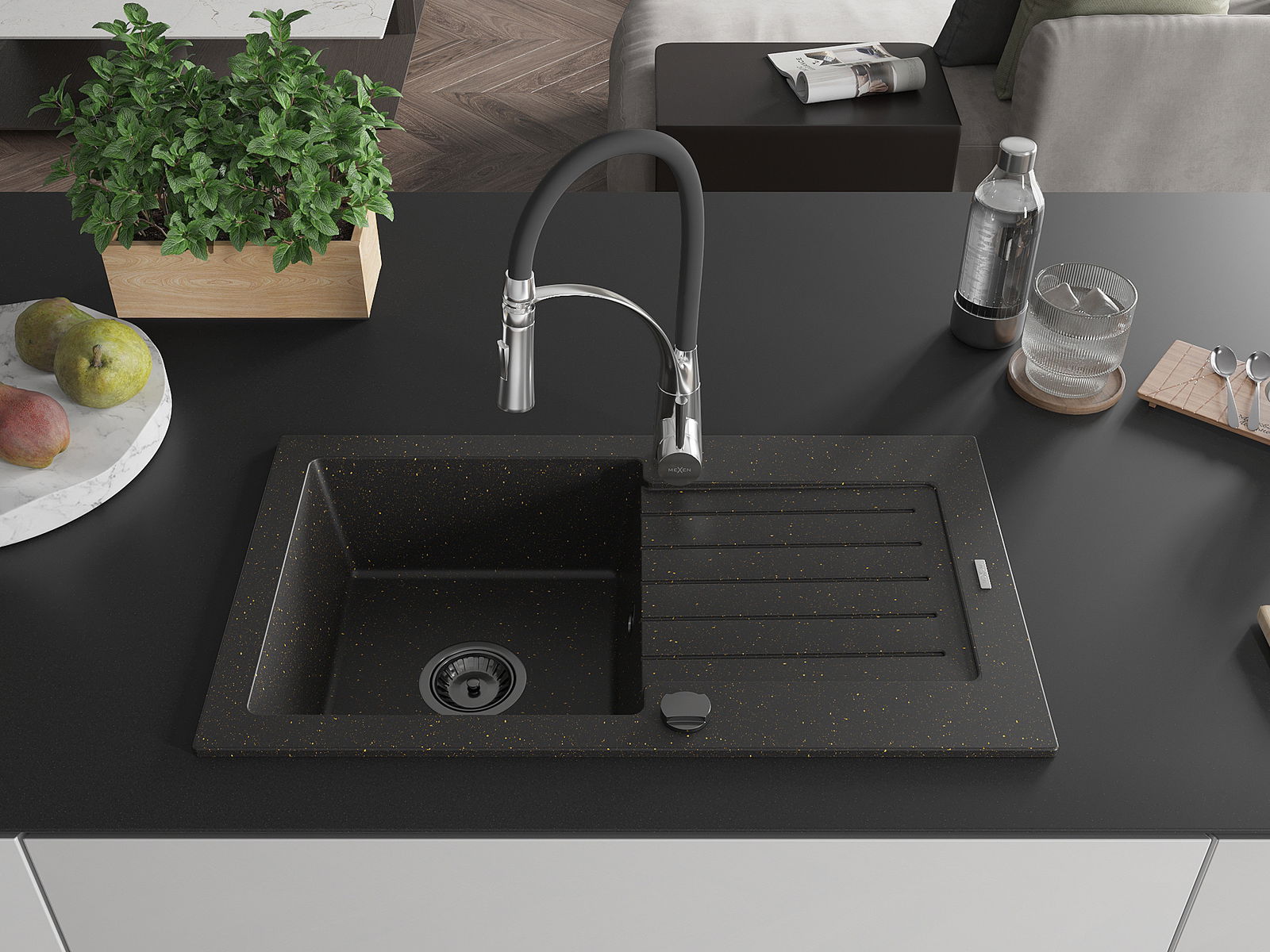 Mexen Pablo νεροχύτης γρανίτης μονής λεκάνης με αποστραγγιστήρα και