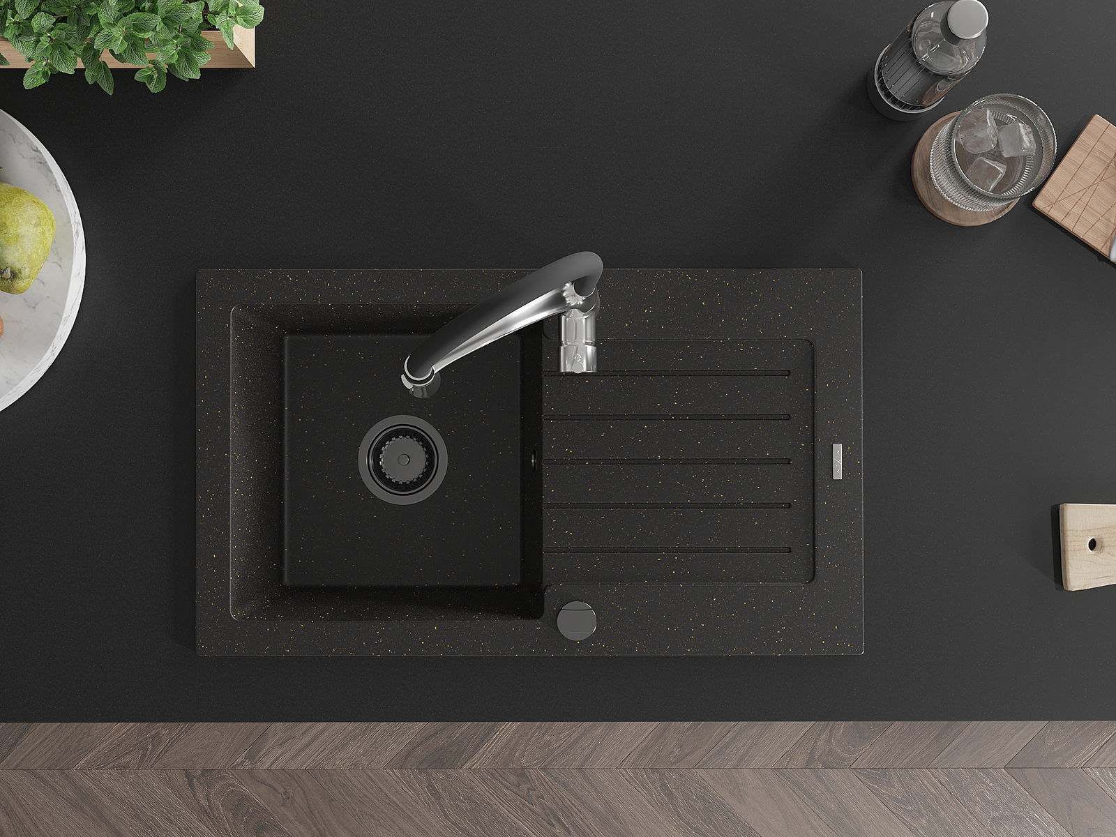 Ο νεροχύτης κατασκευάστηκε από υψηλής ποιότητας γρανίτη. Αποτελεί μια κομψή, και κυρίως πρακτική προσθήκη για κάθε κουζίνα, ανεξάρτητα από το στυλ της. Η υψηλή ποιότητα και η αντοχή του γρανίτη εξασφαλίζουν πολυετή χρήση.