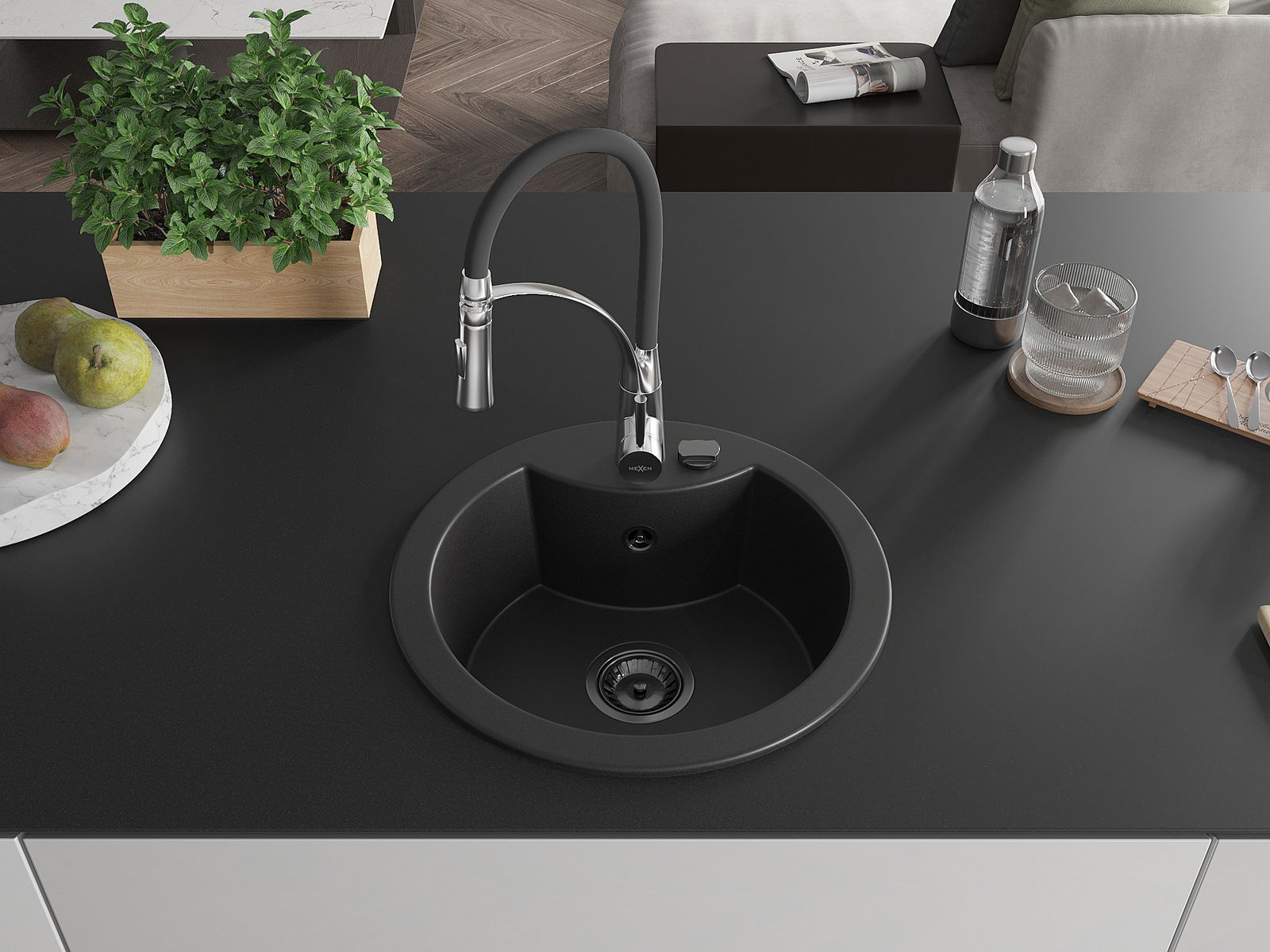 Mexen Diego νεροχύτης γρανίτης 1-διαμερισμάτων με μπαταρία κουζίνας Aster,