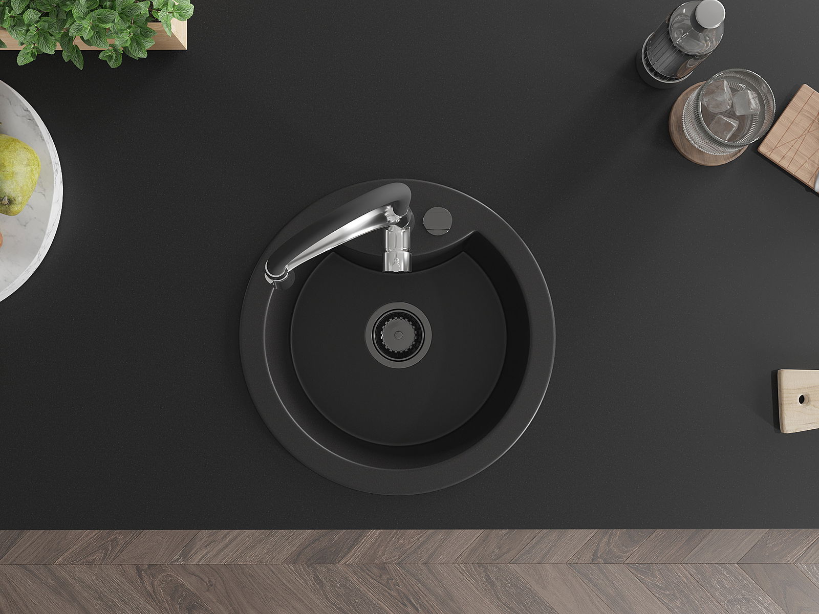 Ο νεροχύτης κατασκευάστηκε από υψηλής ποιότητας γρανίτη. Αποτελεί μια κομψή, και κυρίως πρακτική προσθήκη για κάθε κουζίνα, ανεξάρτητα από το στυλ της. Η υψηλή ποιότητα και η αντοχή του γρανίτη εξασφαλίζουν πολυετή χρήση.