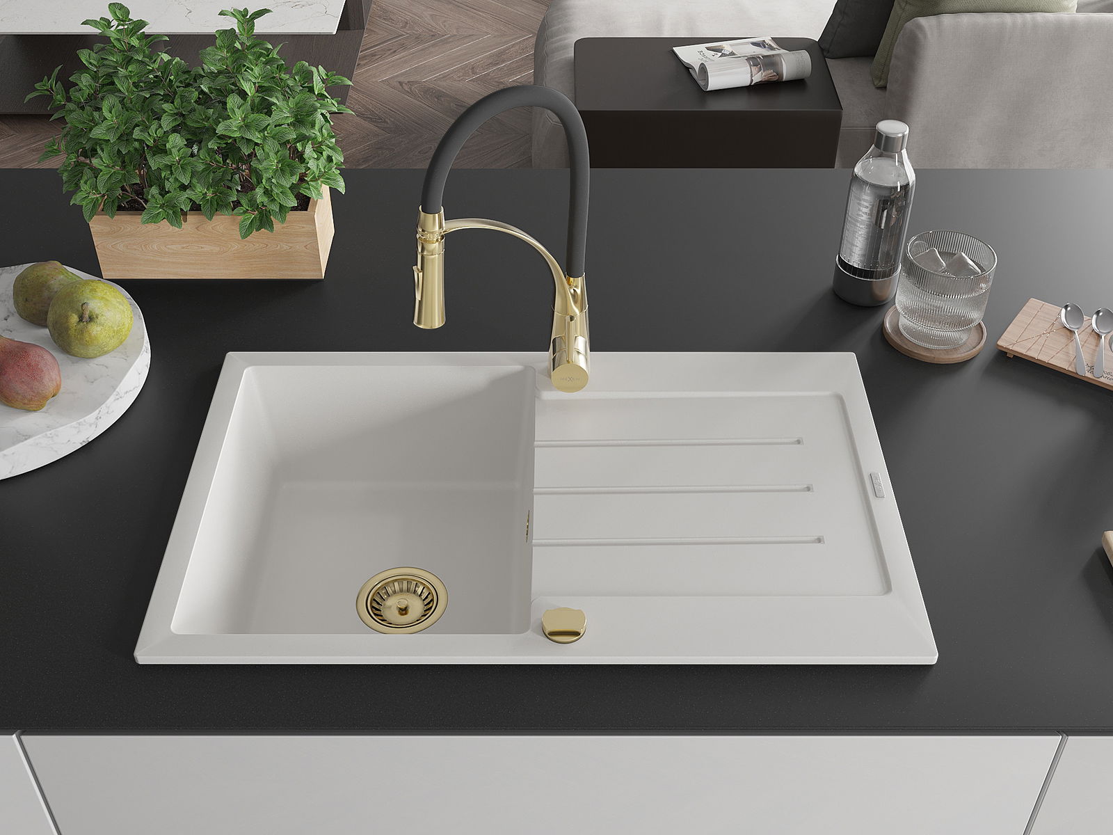 Mexen Bruno νεροχύτης γρανίτης 1-θαλάμου με στραγγιστήρα και μπαταρία