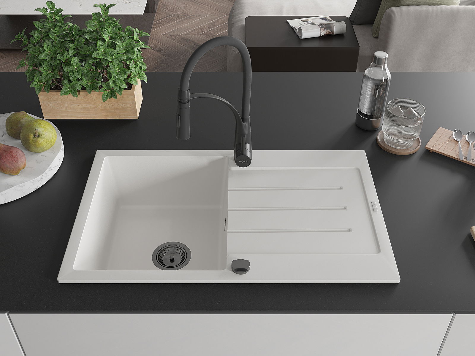Mexen Bruno νεροχύτης γρανίτης μονής λεκάνης με αποστραγγιστήρα και