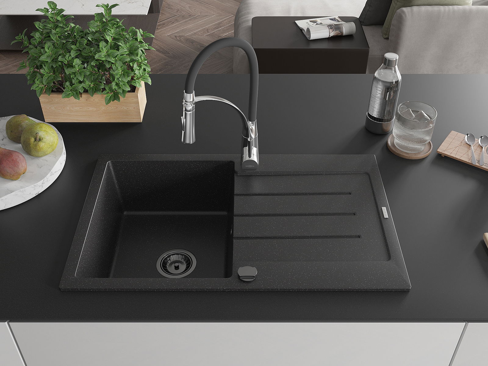 Mexen Bruno νιπτήρας γρανίτης 1-θαλάμου με αποστραγγιστικό και μπαταρία