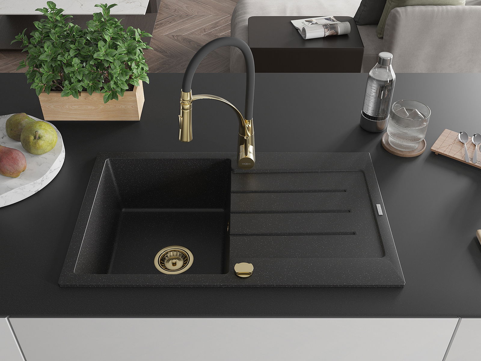 Mexen Bruno νεροχύτης από γρανίτη 1 διαμερίσματος με αποστραγγιστήρα και