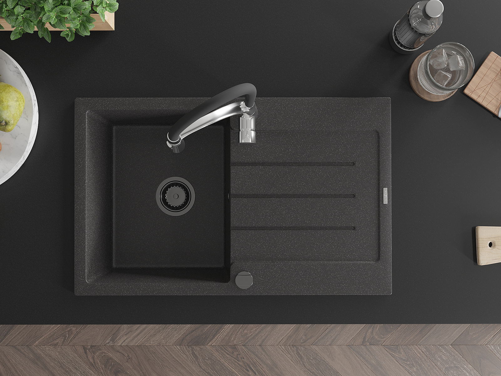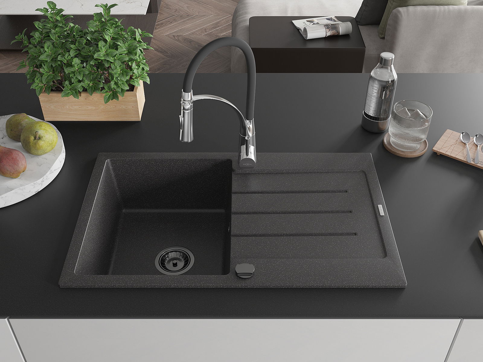 Mexen Bruno νεροχύτης γρανίτης 1-διαμερισματικός με στραγγιστήρα και