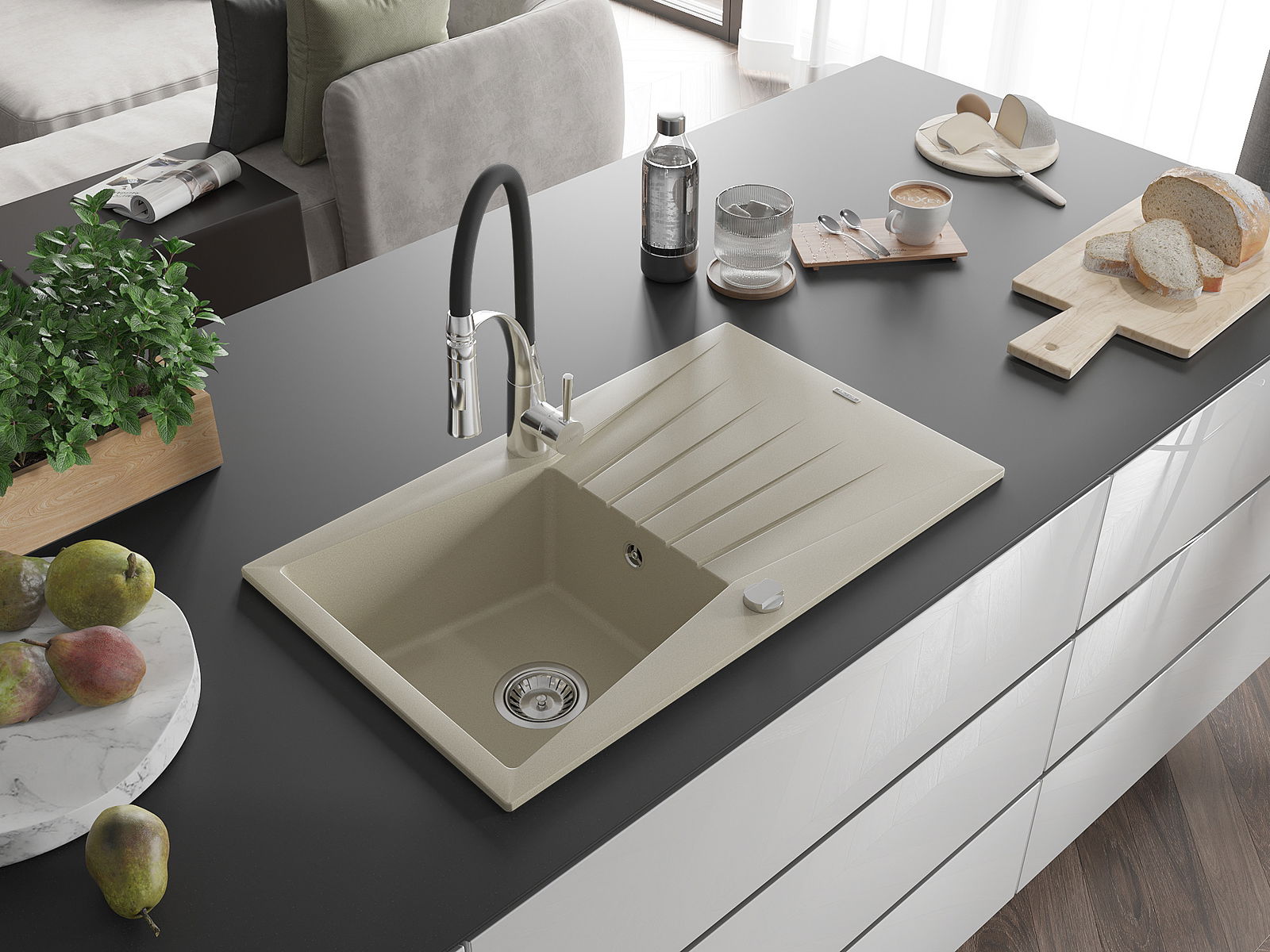 Ο νεροχύτης κατασκευάστηκε από υψηλής ποιότητας γρανίτη. Αποτελεί μια κομψή, και κυρίως πρακτική προσθήκη για κάθε κουζίνα, ανεξάρτητα από το στυλ της. Η υψηλή ποιότητα και η αντοχή του γρανίτη εξασφαλίζουν πολυετή χρήση.