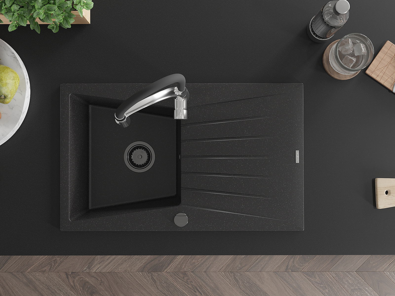 Mexen Cesar νεροχύτης γρανίτη μονού θαλάμου με στραγγιστήρι και μπαταρία