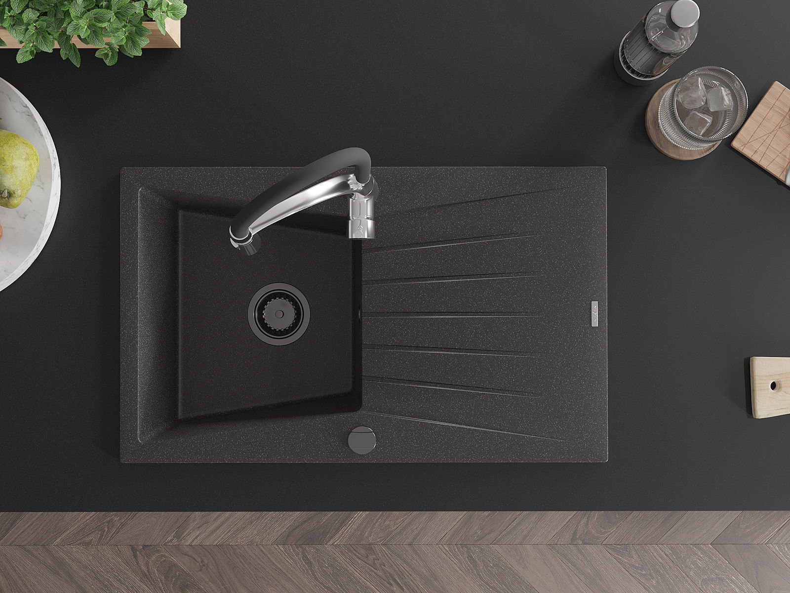 Ο νεροχύτης κατασκευάστηκε από υψηλής ποιότητας γρανίτη. Αποτελεί μια κομψή, και κυρίως πρακτική προσθήκη για κάθε κουζίνα, ανεξάρτητα από το στυλ της. Η υψηλή ποιότητα και η αντοχή του γρανίτη εξασφαλίζουν πολυετή χρήση.