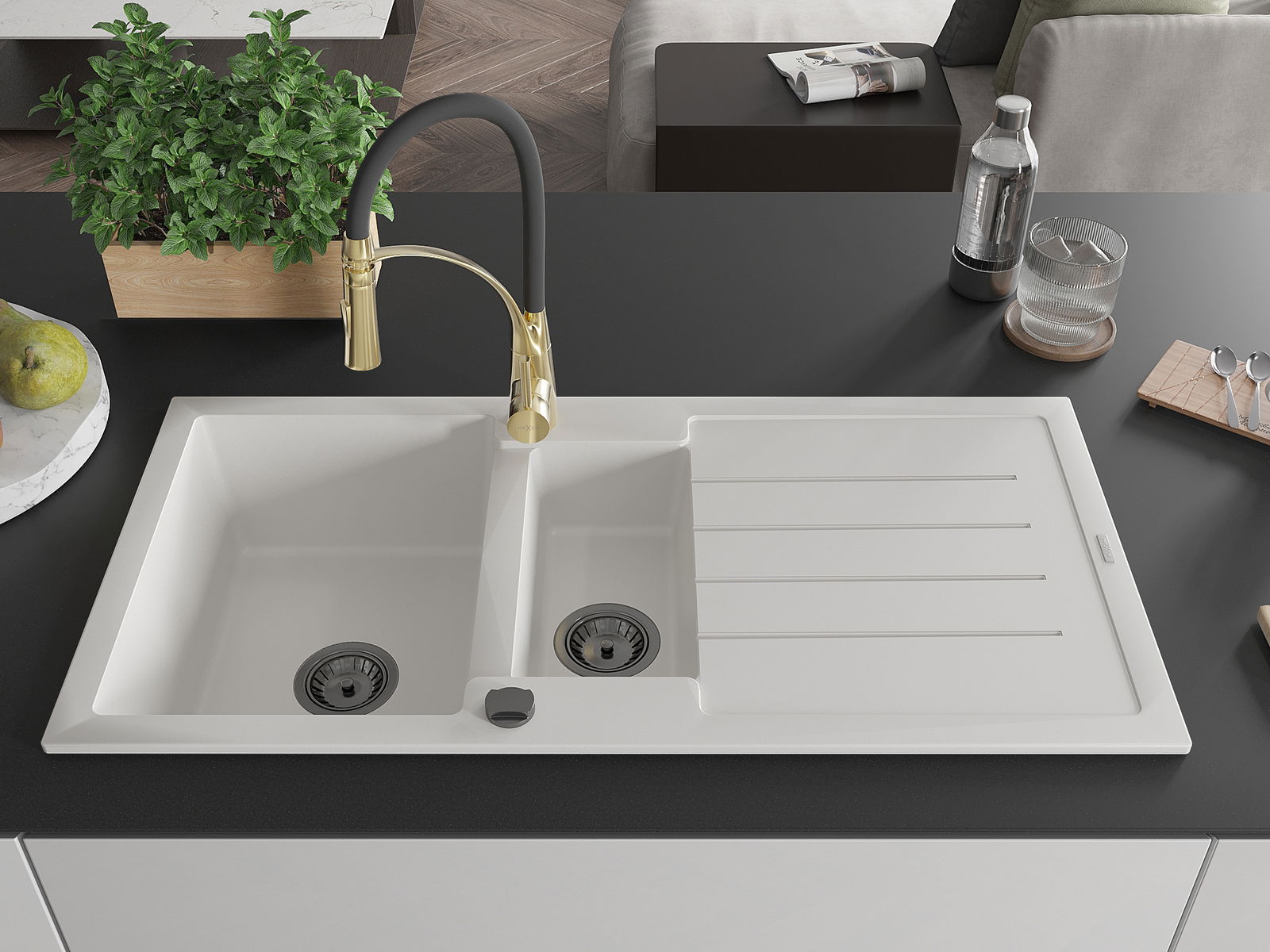 Η επιφάνεια του νεροχύτη είναι ανθεκτική σε λεκέδες και αποχρωματισμούς, καθιστώντας τη εύκολη στη συντήρηση καθαριότητας και διατηρεί το χρώμα της για μεγάλο χρονικό διάστημα χρήσης. Αισθητική και πρακτική συμπλήρωση κάθε κουζίνας.