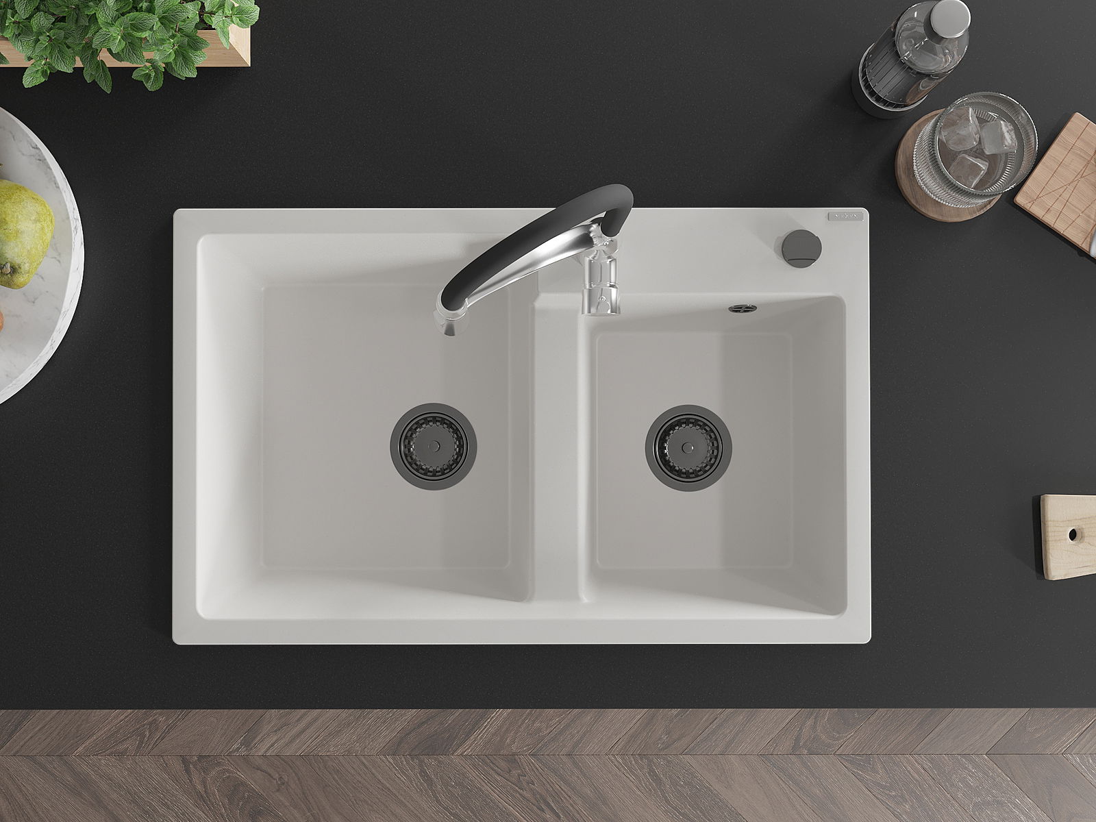 Mexen Tomas νεροχύτης γρανίτη 2-θαλάμων με μπαταρία κουζίνας Aster, λευκός