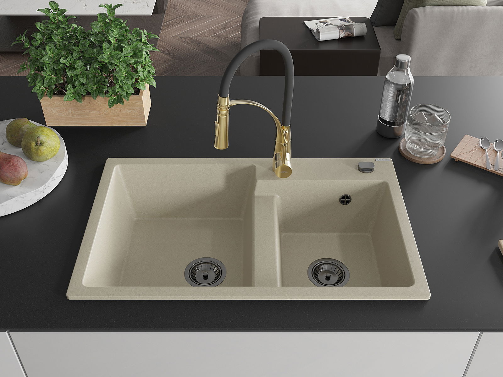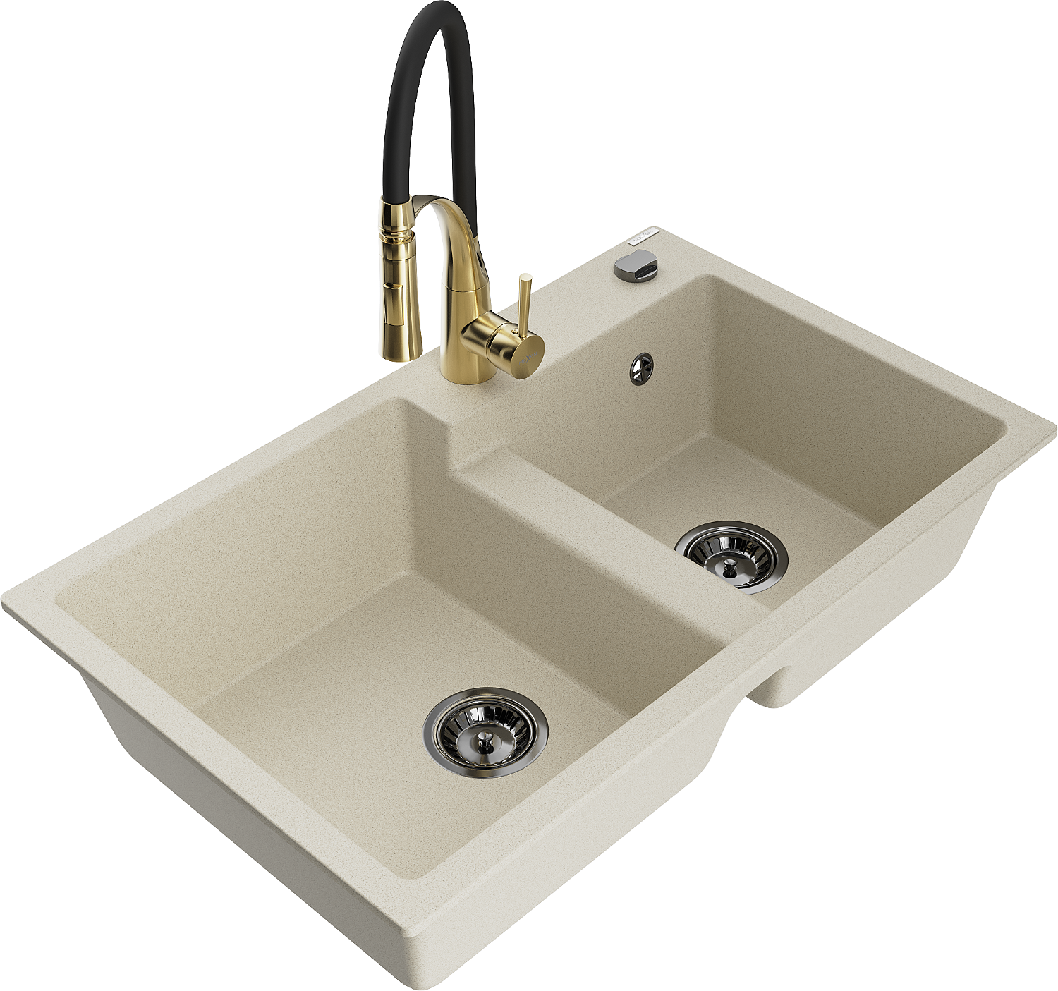 Mexen Tomas νεροχύτης γρανίτης 2-θαλάμων με μπαταρία κουζίνας Aster, μπεζ