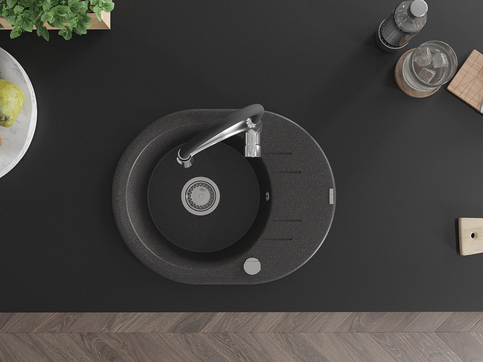Mexen Kevin νεροχύτης γρανίτης μονός με στραγγιστήρι και μπαταρία