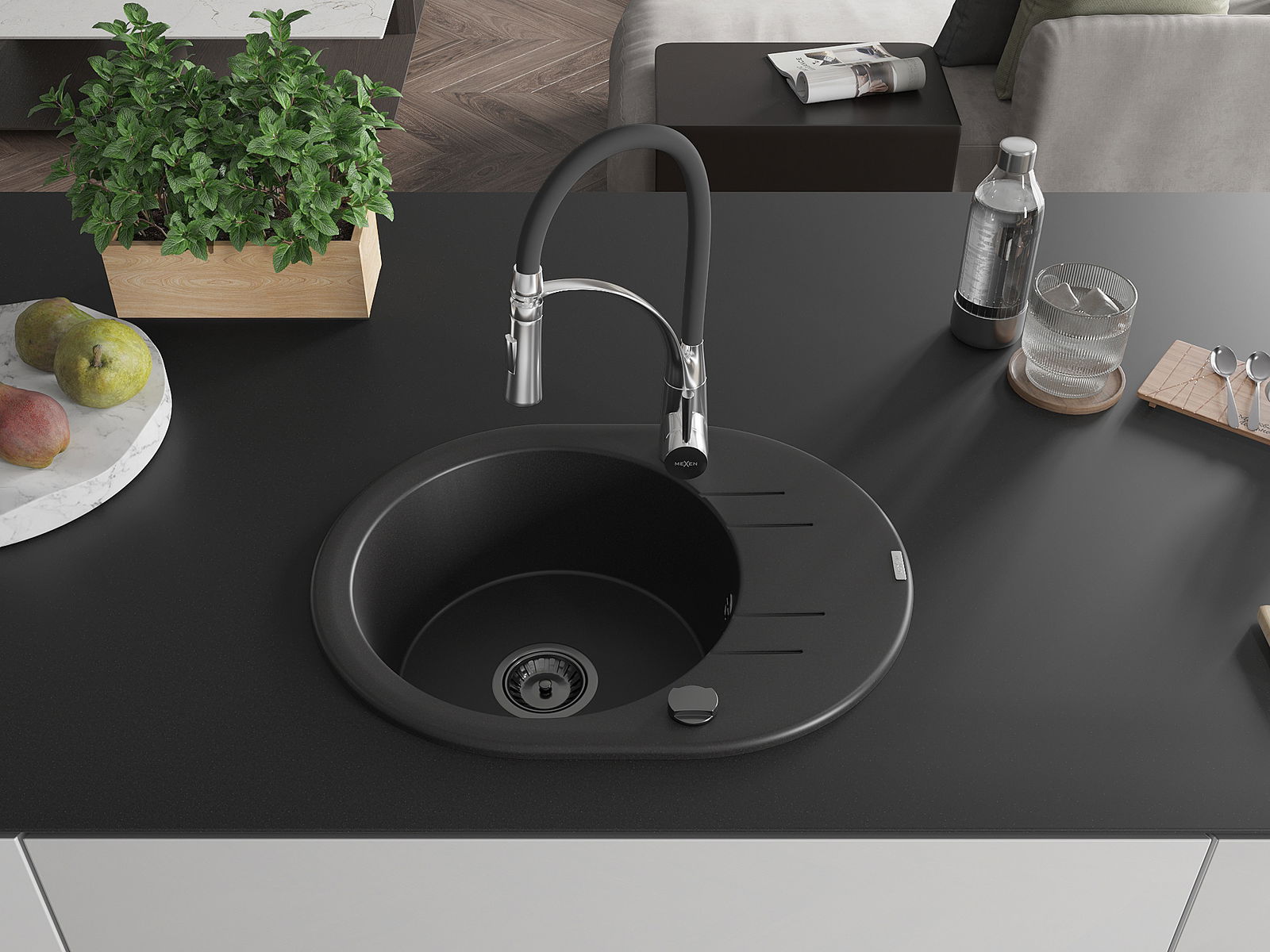 Mexen Kevin νιπτήρας γρανίτη 1-λεκάνης με αποστράγγιση και μπαταρία