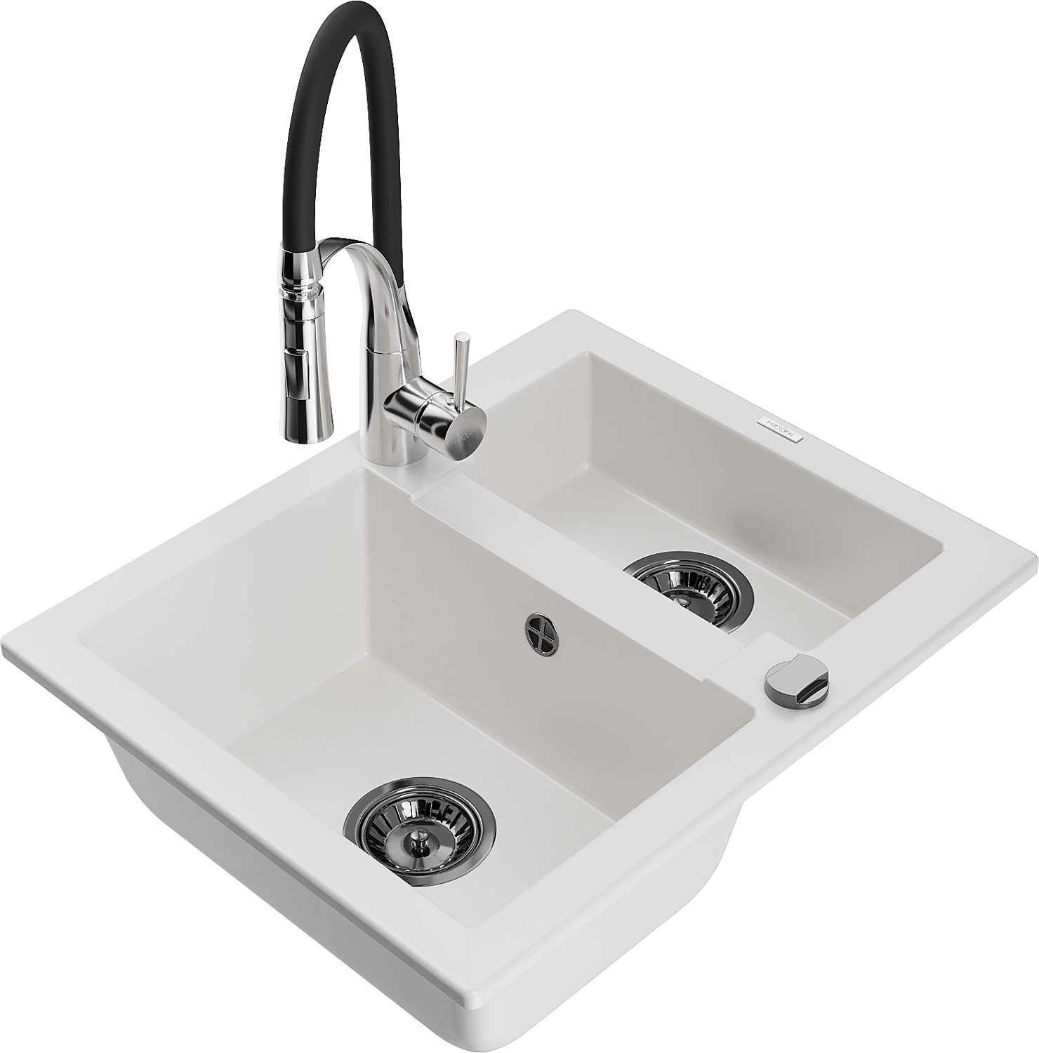Mexen Carlos νεροχύτης γρανίτης 1,5-θαλάμων με μπαταρία κουζίνας Aster, λευκός