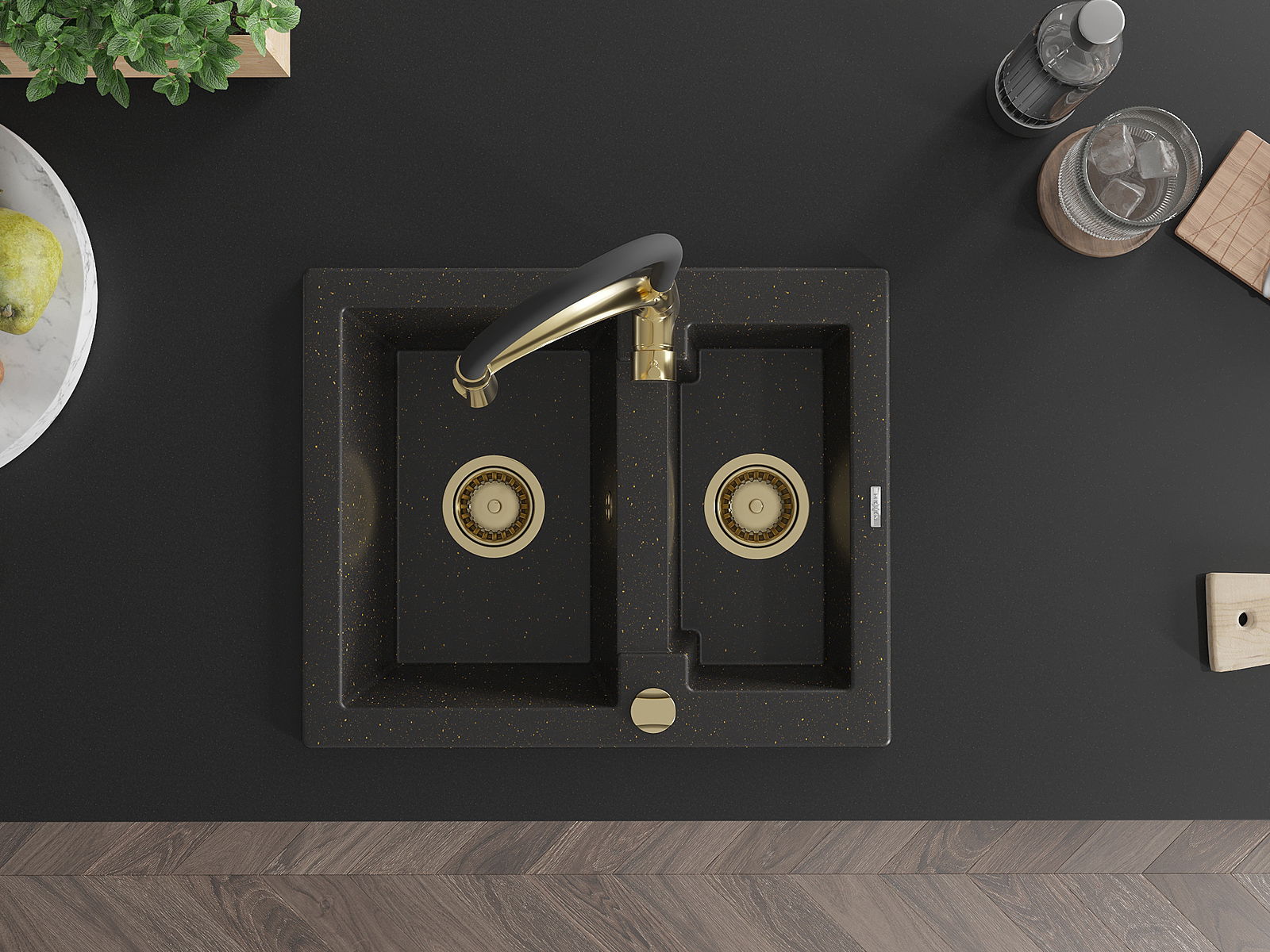 Mexen Carlos νεροχύτης γρανίτη 1,5-δοχείων με μπαταρία κουζίνας Aster,