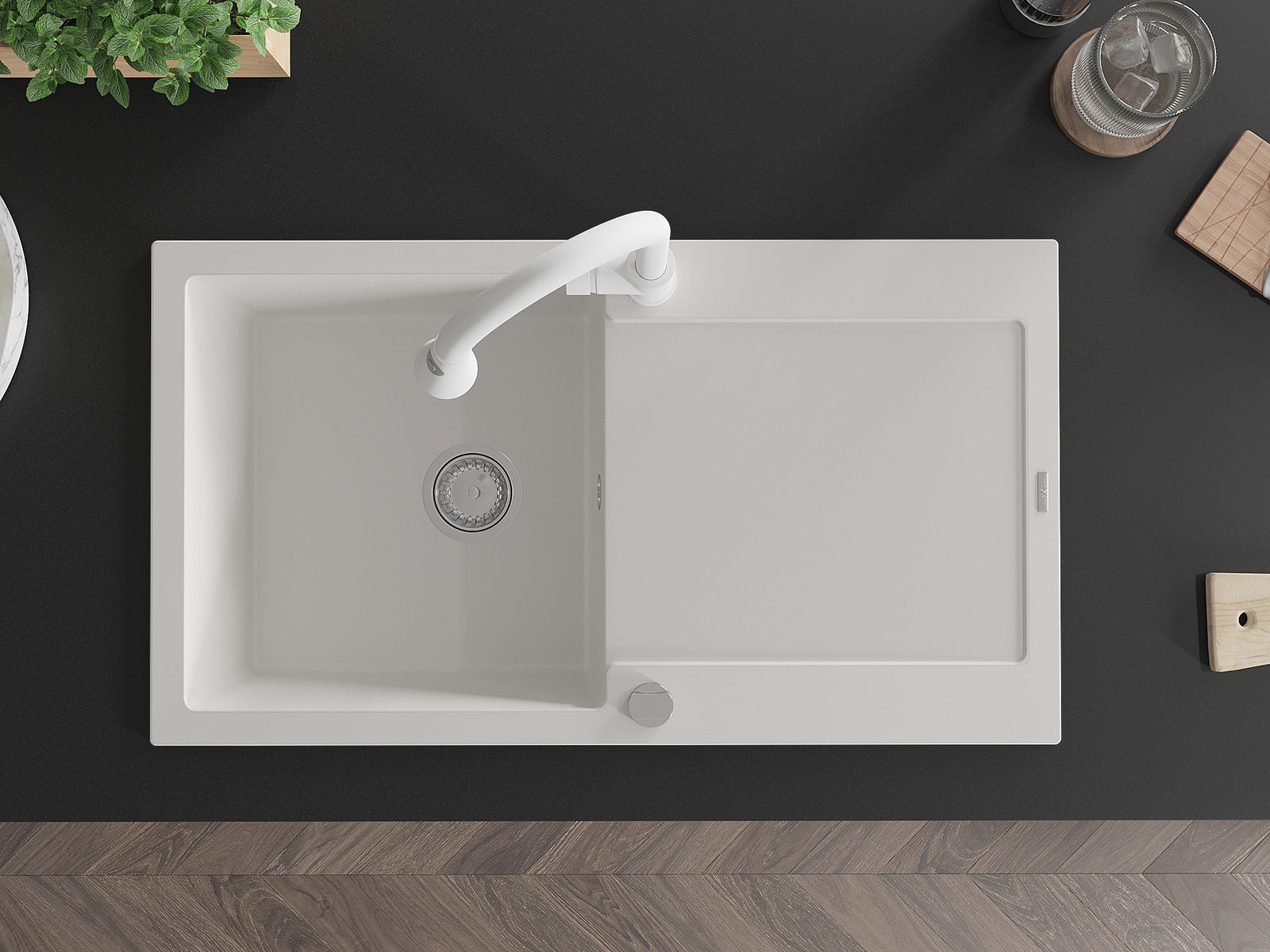 Ο νεροχύτης κατασκευάστηκε από υψηλής ποιότητας γρανίτη. Αποτελεί μια κομψή, και κυρίως πρακτική προσθήκη για κάθε κουζίνα, ανεξάρτητα από το στυλ της. Η υψηλή ποιότητα και η αντοχή του γρανίτη εξασφαλίζουν πολυετή χρήση.