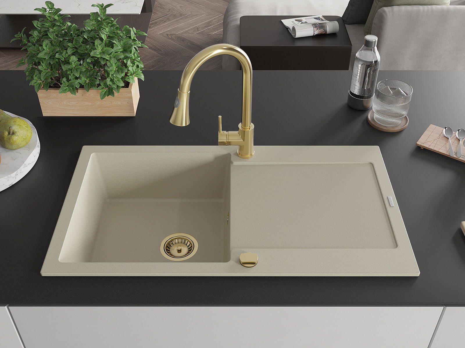 Ο νεροχύτης κατασκευάστηκε από υψηλής ποιότητας γρανίτη. Αποτελεί μια κομψή, και κυρίως πρακτική προσθήκη για κάθε κουζίνα, ανεξάρτητα από το στυλ της. Η υψηλή ποιότητα και η αντοχή του γρανίτη εξασφαλίζουν πολυετή χρήση.