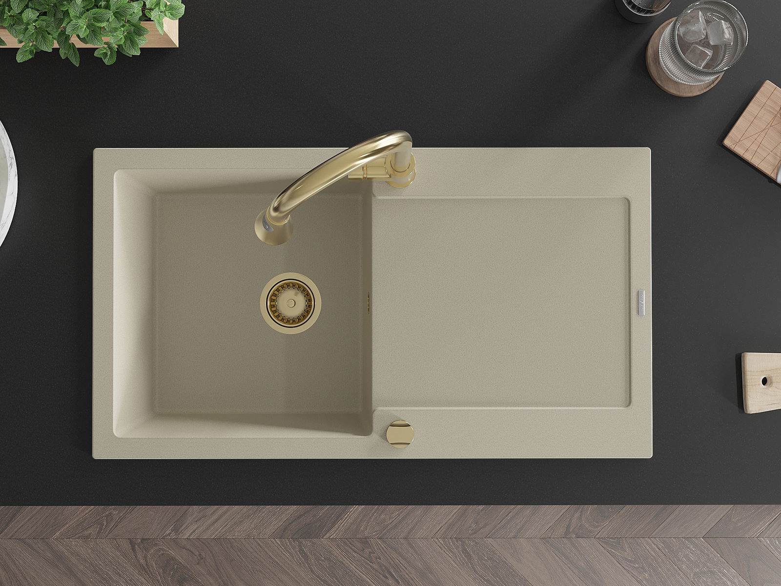 Mexen Leo νεροχύτης γρανίτης 1-διαμέρισμα με στραγγιστήριο και μπαταρία