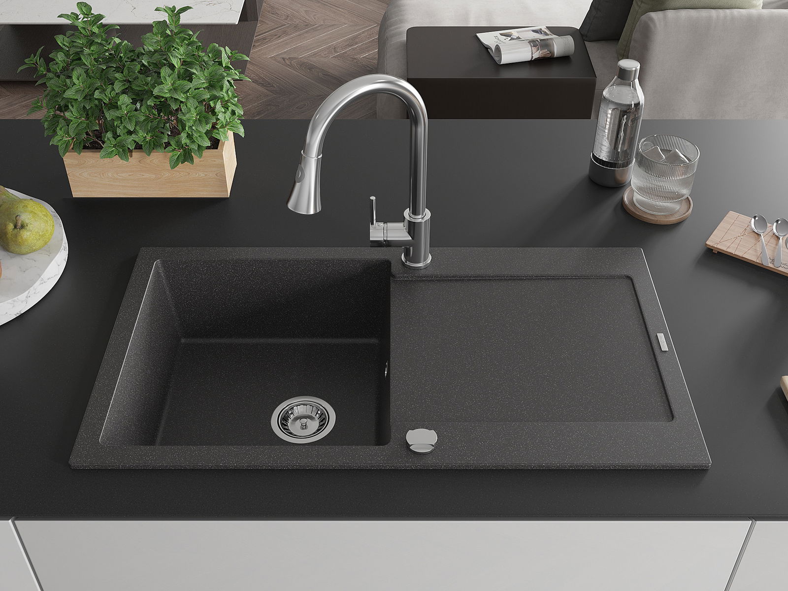Ο νεροχύτης κατασκευάστηκε από υψηλής ποιότητας γρανίτη. Αποτελεί μια κομψή, και κυρίως πρακτική προσθήκη για κάθε κουζίνα, ανεξάρτητα από το στυλ της. Η υψηλή ποιότητα και η αντοχή του γρανίτη εξασφαλίζουν πολυετή χρήση.