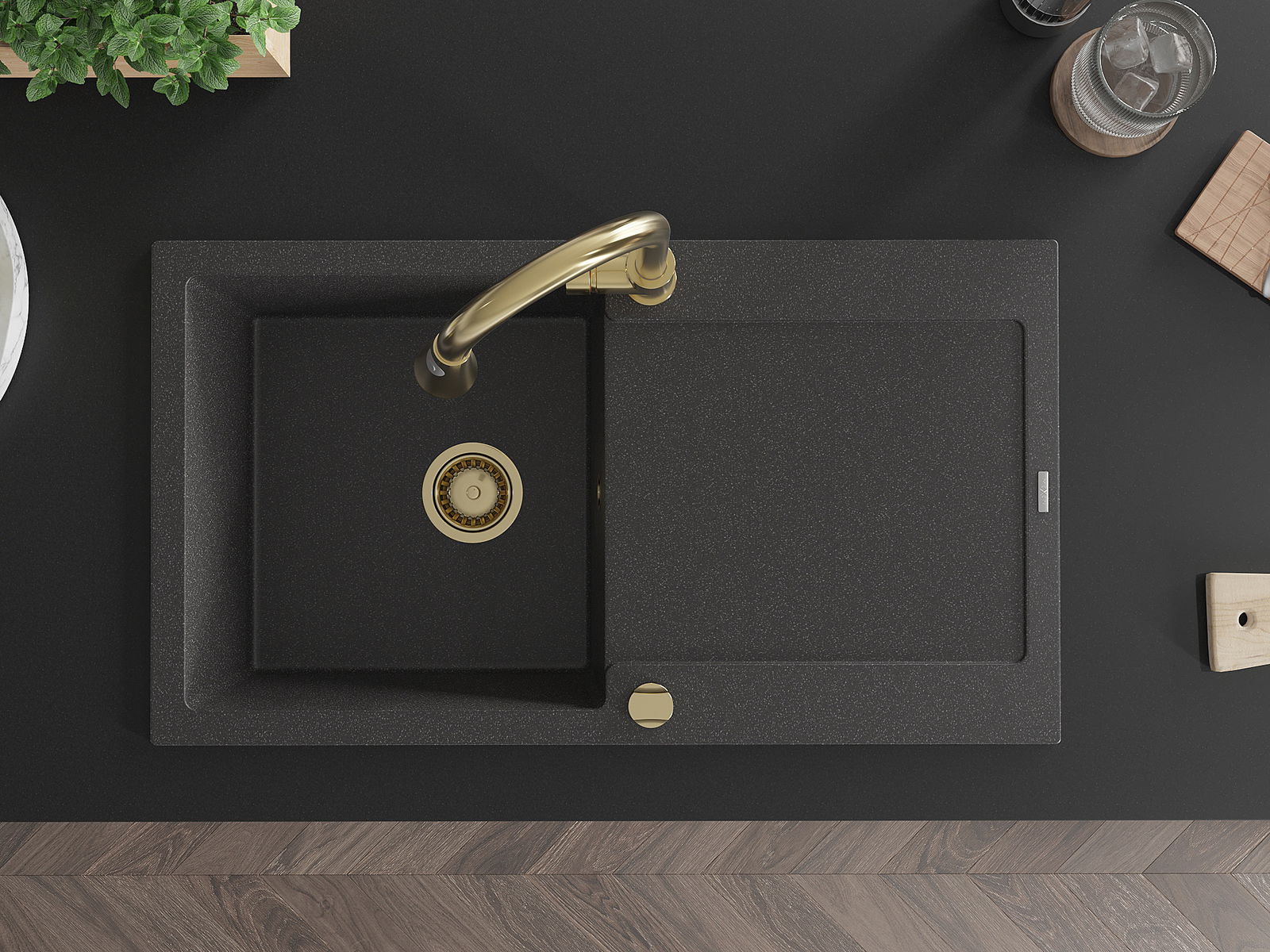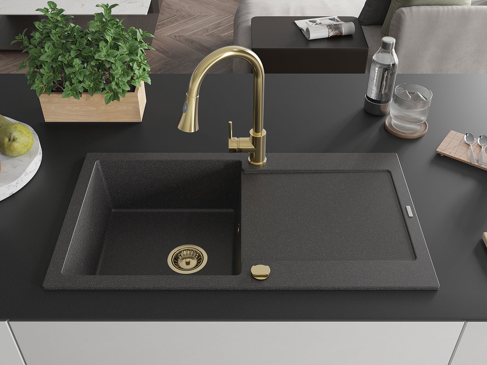 Mexen Leo νεροχύτης γρανίτης μονής λεκάνης με αποστράγγιση και μπαταρία