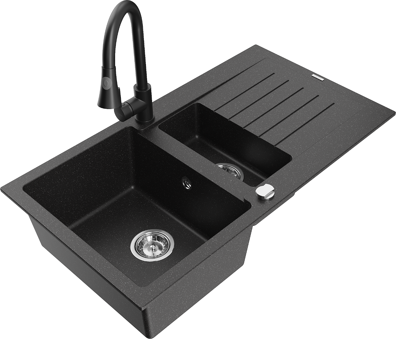 Mexen Matias νεροχύτης γρανίτης 1,5 θαλάμων με αποστραγγιστήρα και μπαταρία