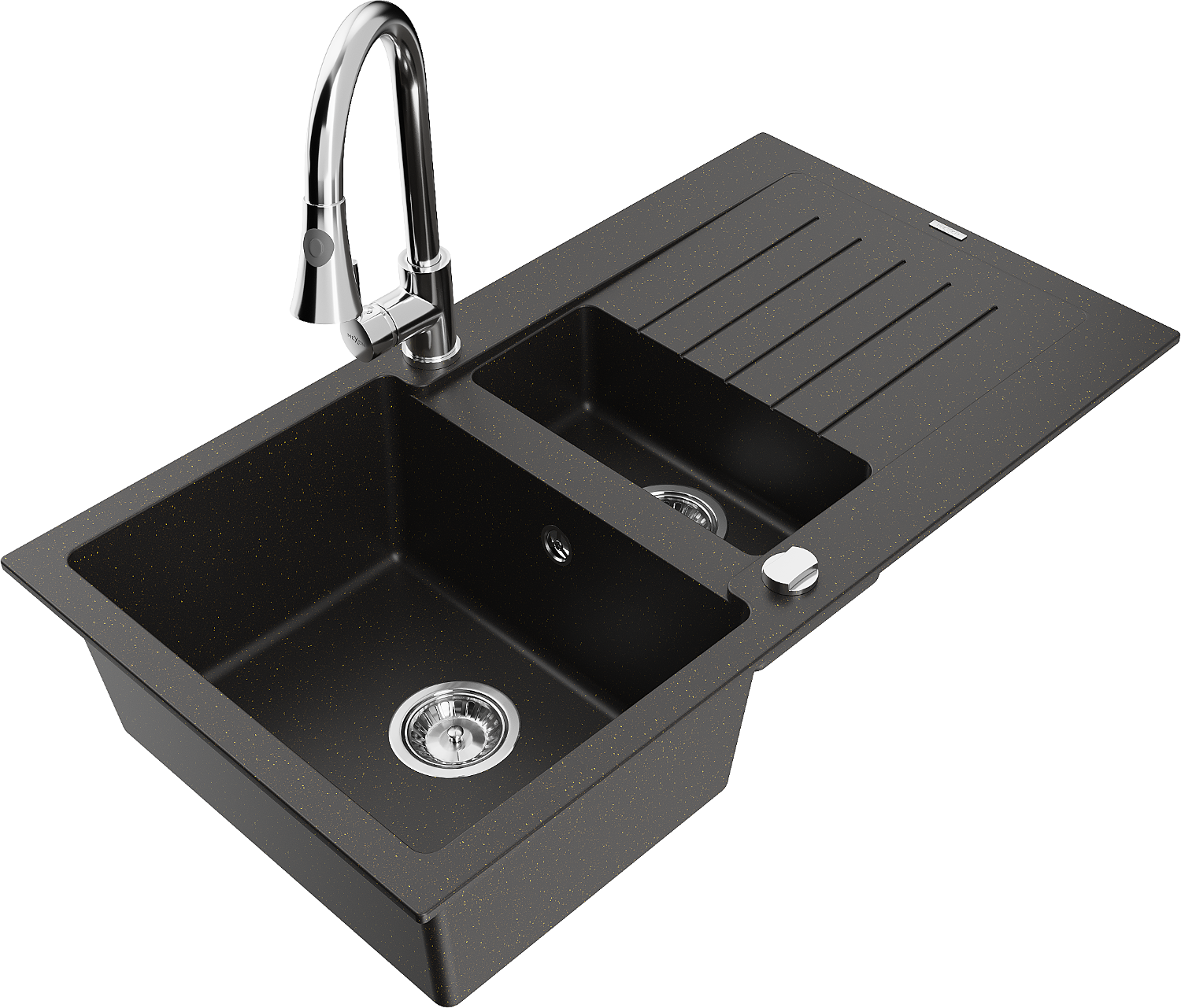 Mexen Matias νεροχύτης γρανίτης 1,5-θαλάμων με αποστραγγιστήρα και μπαταρία