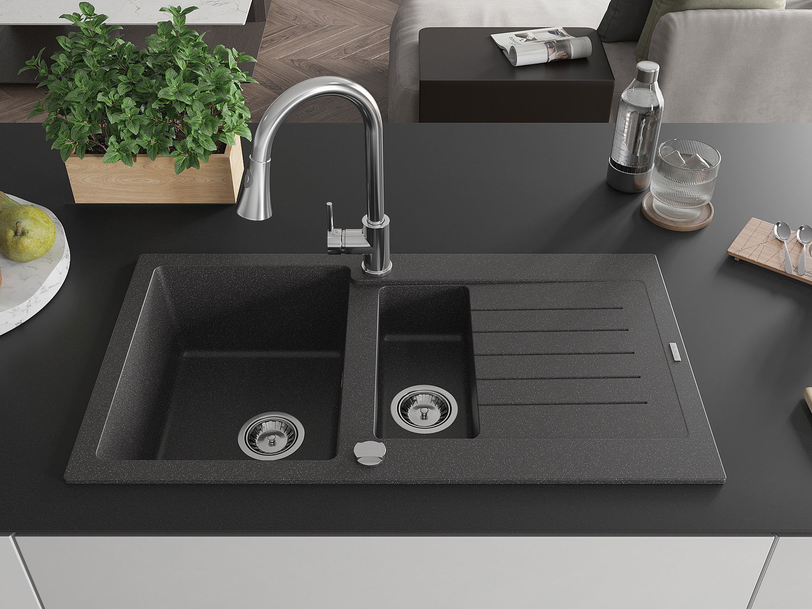 Mexen Matias νεροχύτης γρανίτης 1,5 διαμερισμάτων με αποστράγγιση και