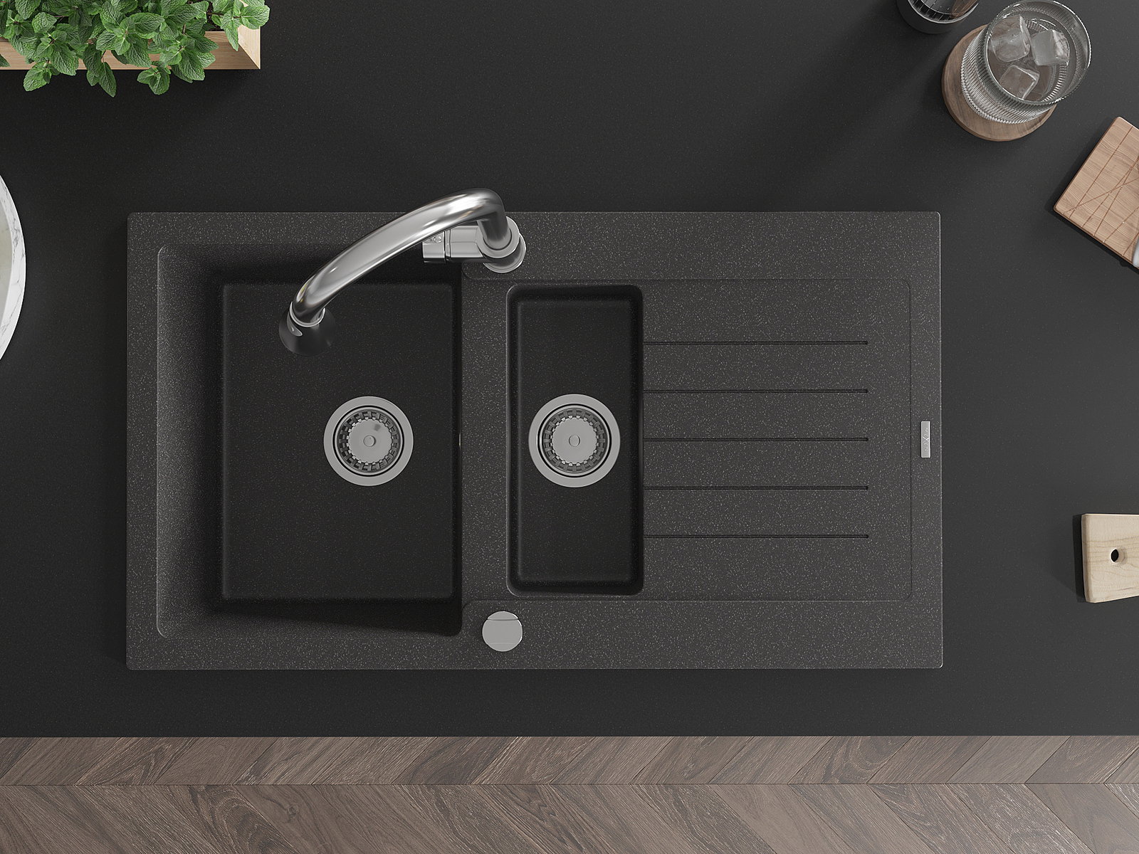 Ο νεροχύτης κατασκευάστηκε από υψηλής ποιότητας γρανίτη. Αποτελεί μια κομψή, και κυρίως πρακτική προσθήκη για κάθε κουζίνα, ανεξάρτητα από το στυλ της. Η υψηλή ποιότητα και η αντοχή του γρανίτη εξασφαλίζουν πολυετή χρήση.