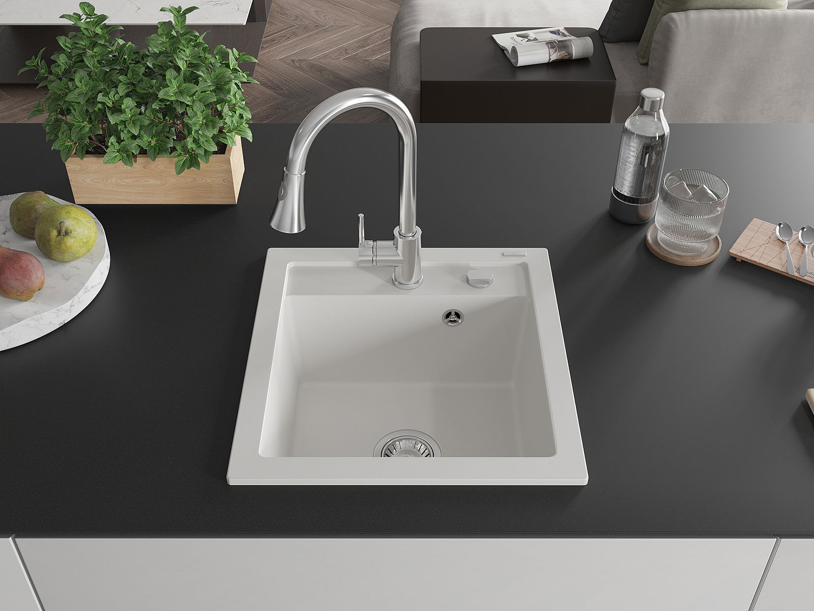 Mexen Vito νεροχύτης γρανίτης 1-διαμέρισμα με βρύση κουζίνας Elia, λευκός