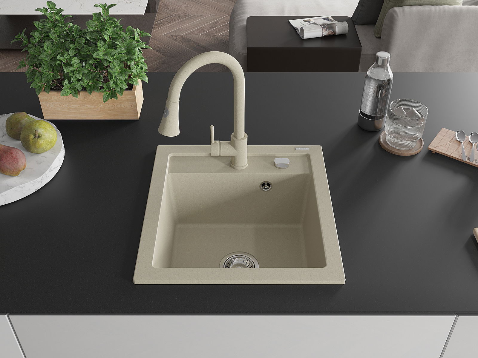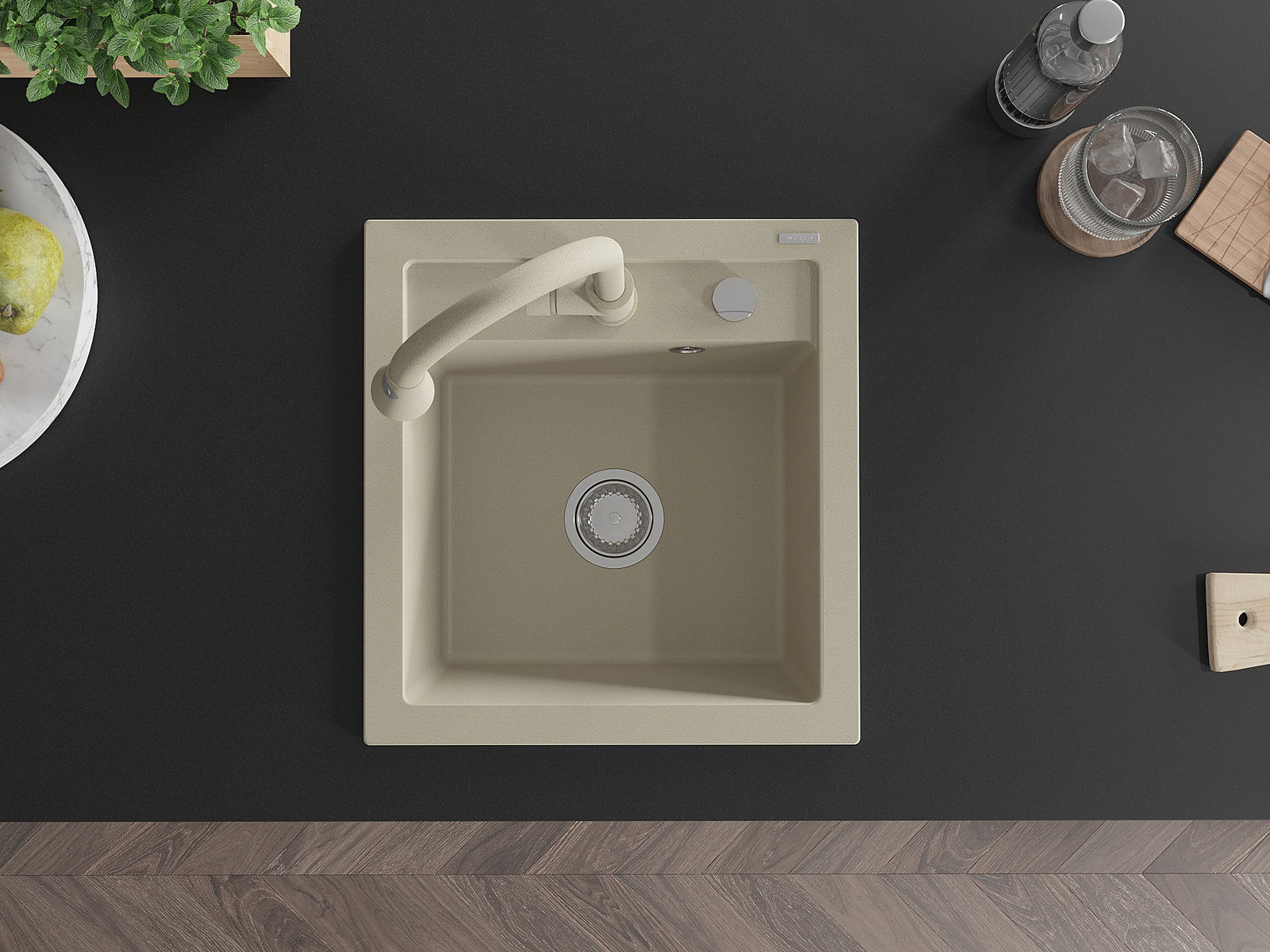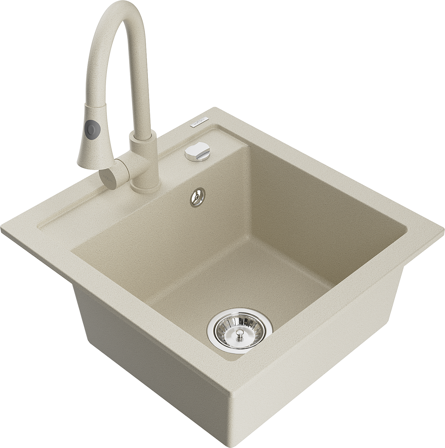 Mexen Vito νεροχύτης γρανίτης μονού θαλάμου με μπαταρία κουζίνας Elia, μπεζ