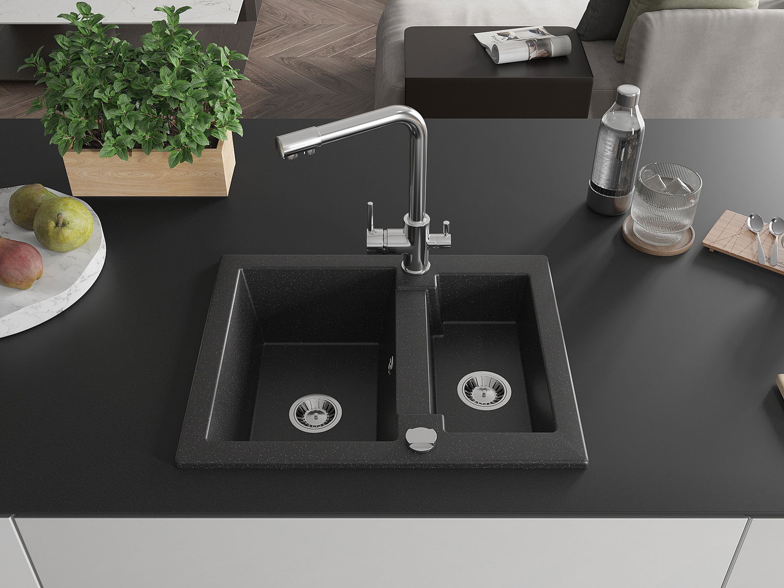 Ο νεροχύτης κατασκευάστηκε από υψηλής ποιότητας γρανίτη. Αποτελεί μια κομψή, και κυρίως πρακτική προσθήκη για κάθε κουζίνα, ανεξάρτητα από το στυλ της. Η υψηλή ποιότητα και η αντοχή του γρανίτη εξασφαλίζουν πολυετή χρήση.