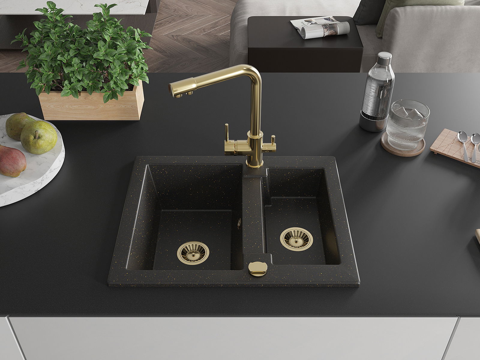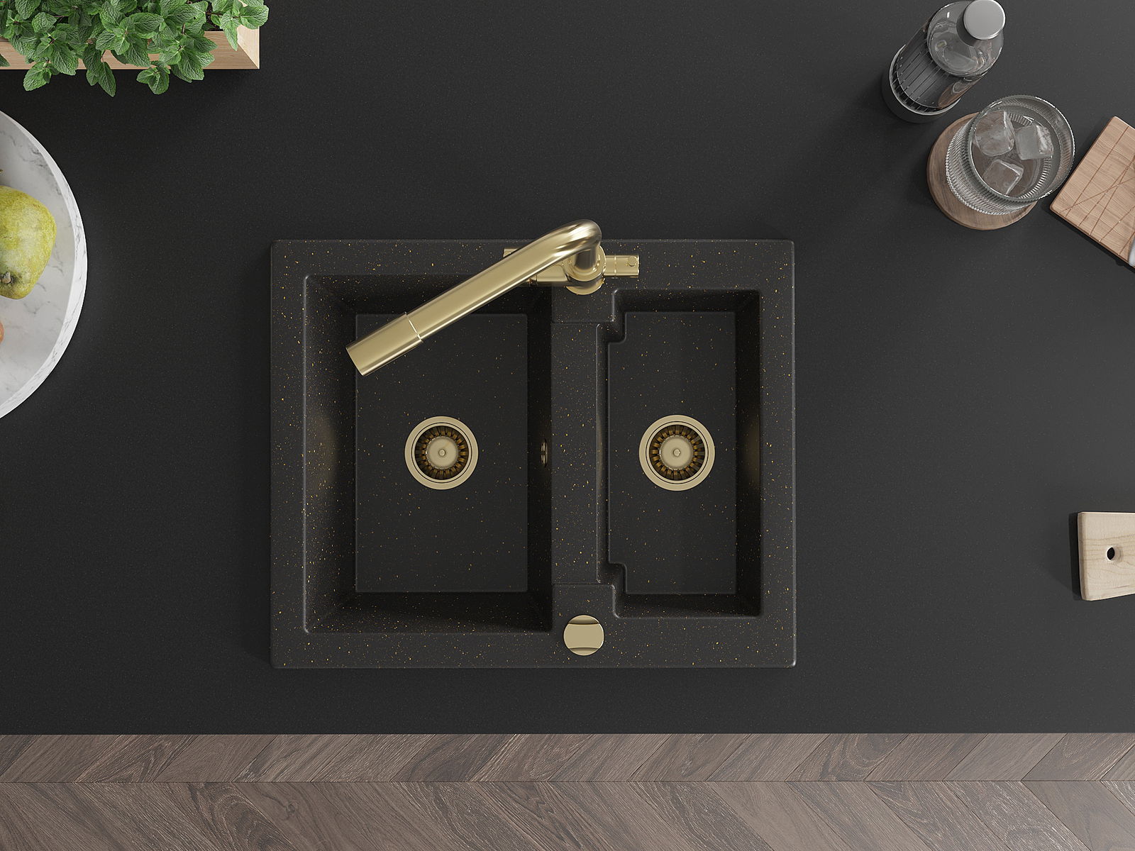 Mexen Carlos νεροχύτης γρανίτη 1,5 θαλάμου με μπαταρία κουζίνας Duero,