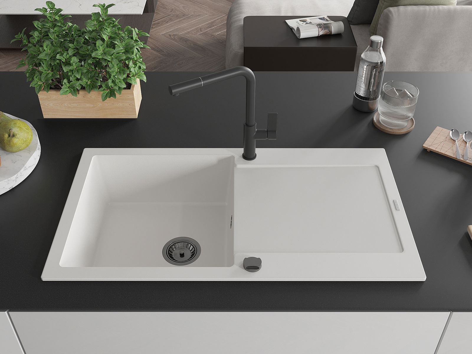 Ο νεροχύτης κατασκευάστηκε από υψηλής ποιότητας γρανίτη. Αποτελεί μια κομψή, και κυρίως πρακτική προσθήκη για κάθε κουζίνα, ανεξάρτητα από το στυλ της. Η υψηλή ποιότητα και η αντοχή του γρανίτη εξασφαλίζουν πολυετή χρήση.