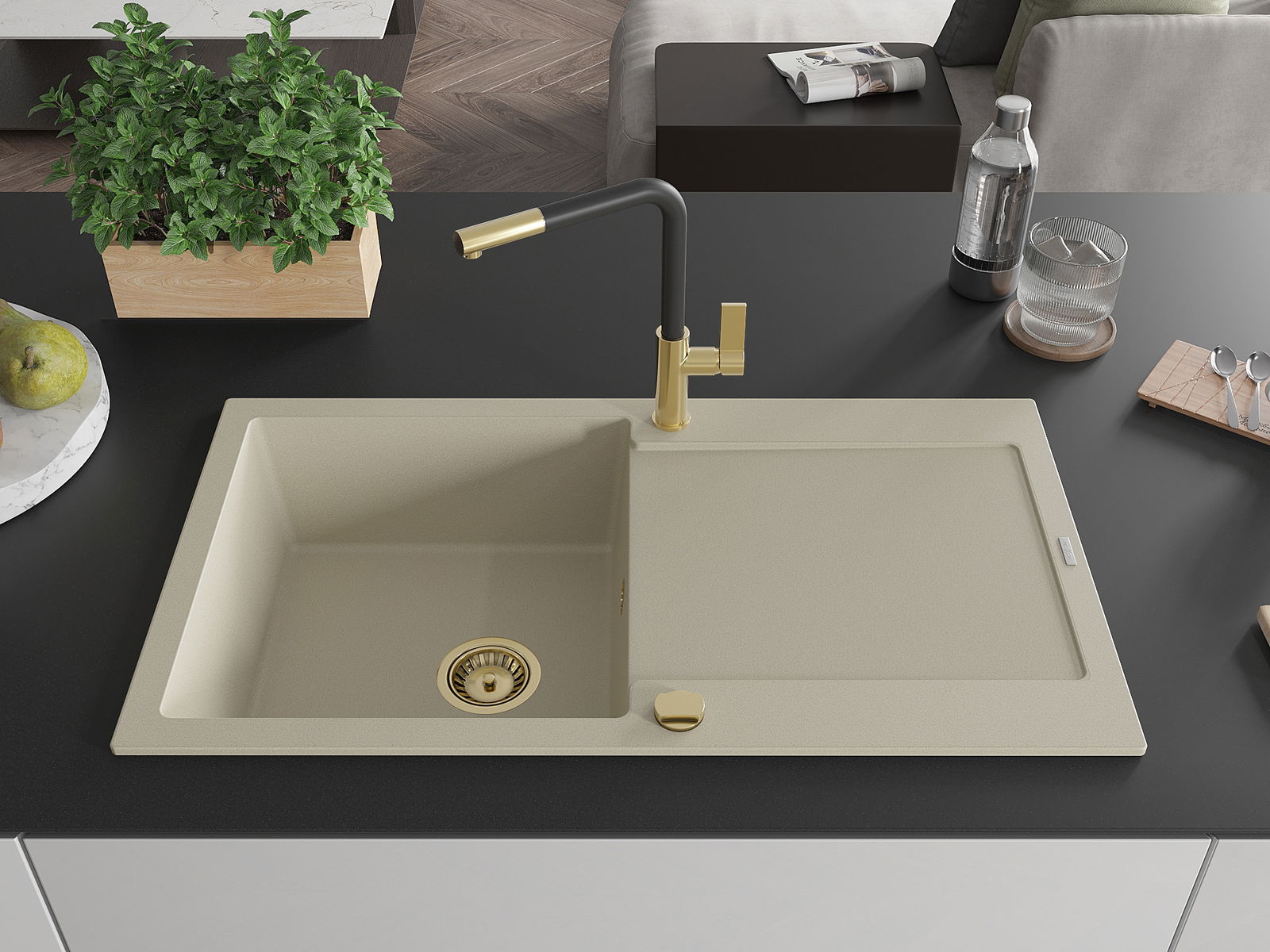 Ο νεροχύτης κατασκευάστηκε από υψηλής ποιότητας γρανίτη. Αποτελεί μια κομψή, και κυρίως πρακτική προσθήκη για κάθε κουζίνα, ανεξάρτητα από το στυλ της. Η υψηλή ποιότητα και η αντοχή του γρανίτη εξασφαλίζουν πολυετή χρήση.