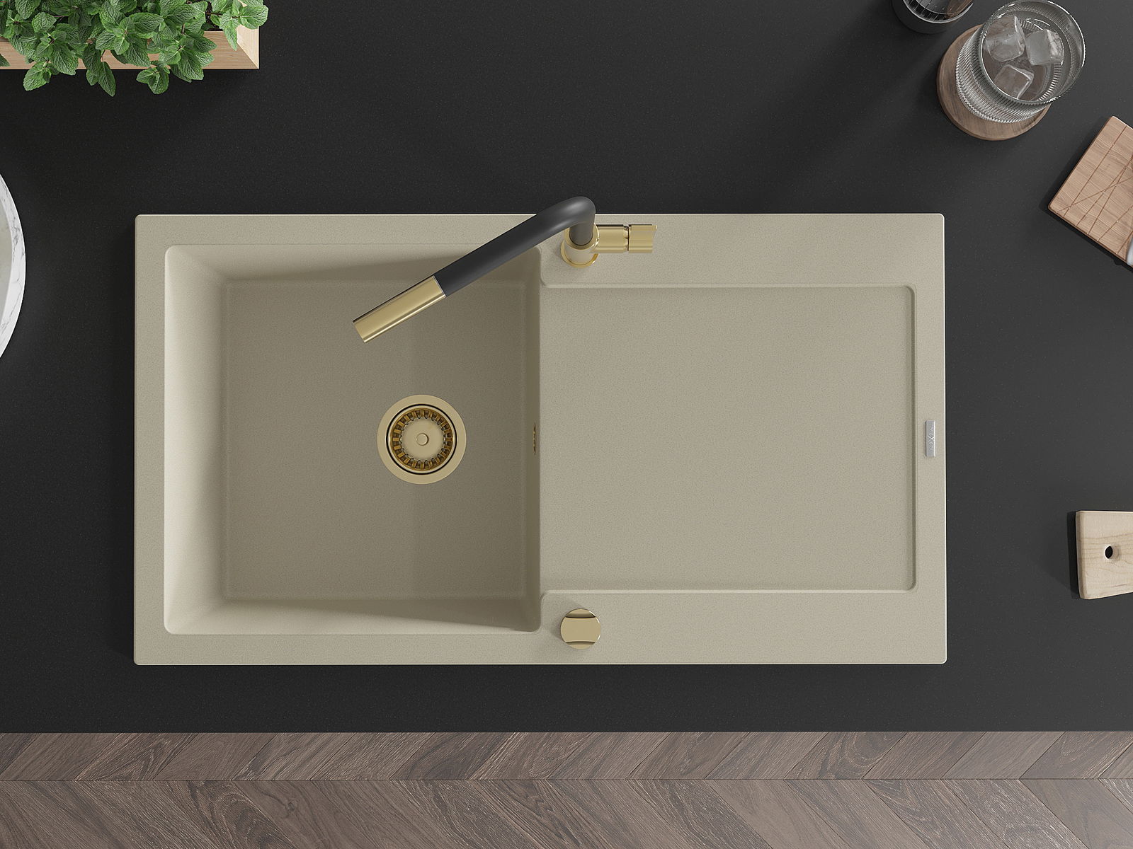 Mexen Leo νεροχύτης γρανίτης 1-θάλαμος με αποστράγγιση και μπαταρία